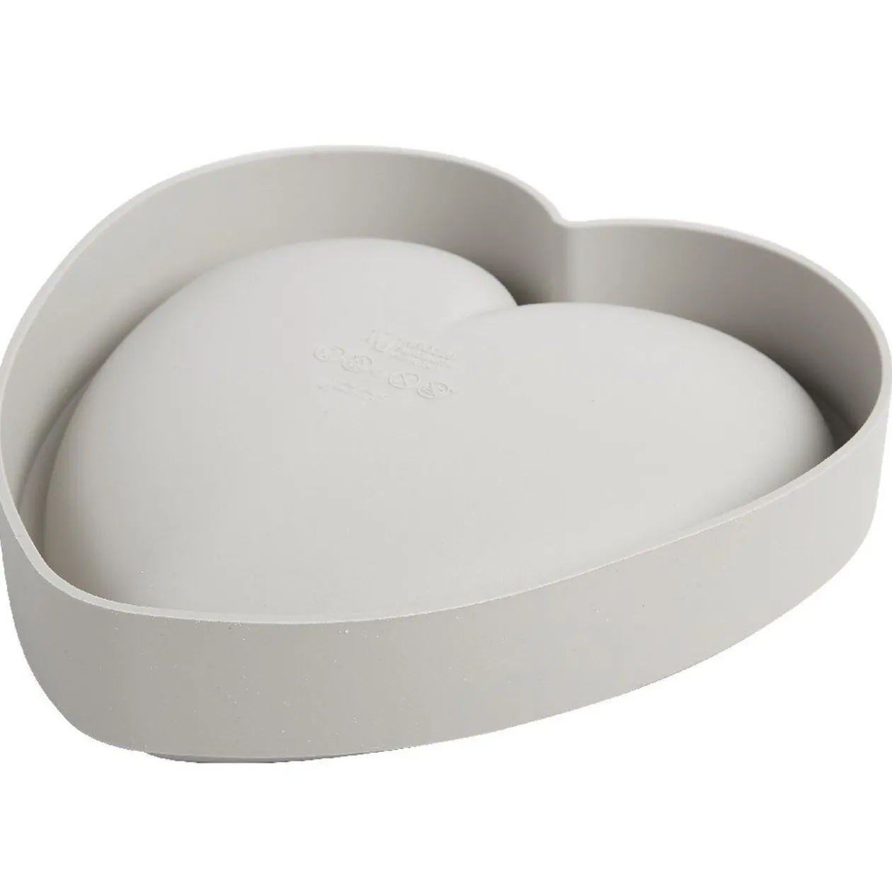 Moule en silicone rouge en forme de coeur.