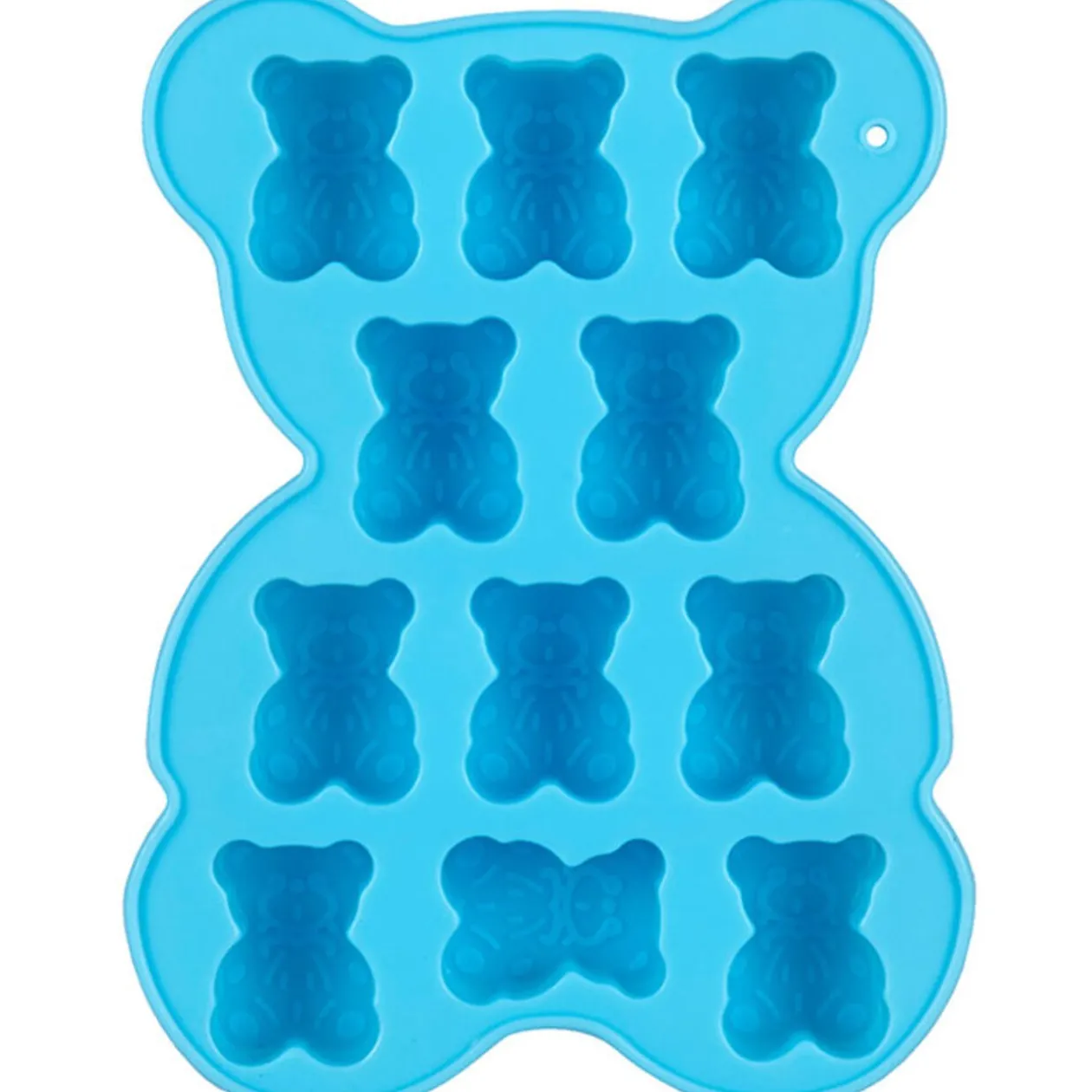 Moule en silicone pour 11 chocolats en forme d’oursons, planche dim. 15×11,5×1,8 cm, oursons dim. 3x2x1,5 cm. Diff. coloris, disponibilité selon arrivage.
