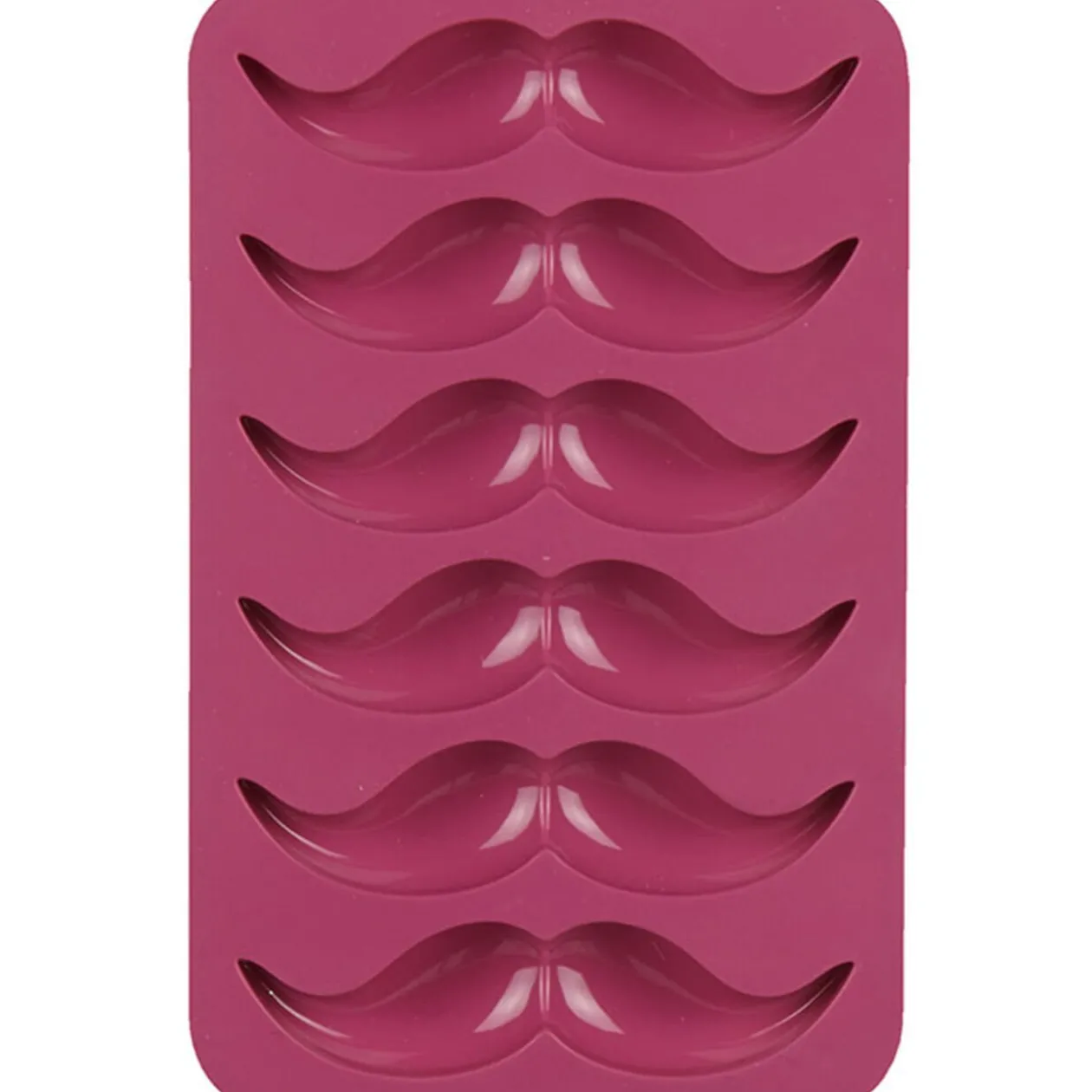 Moule en silicone de 6 moustaches, planche dim. 17,5×11 cm, moustaches dim. 9x2x0,5 cm. Diff. coloris, disponibilité selon arrivage.