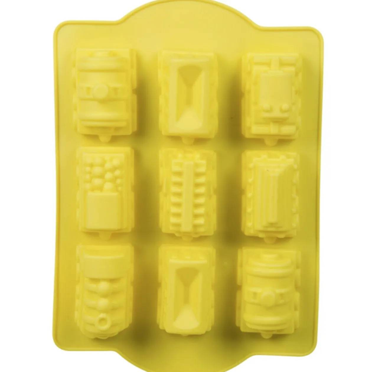 9 mini trains en silicone, dim. 7x5xh5 cm chacun, cuisson four et Micro-ondes. Diff. coloris, disponibilité selon arrivage.