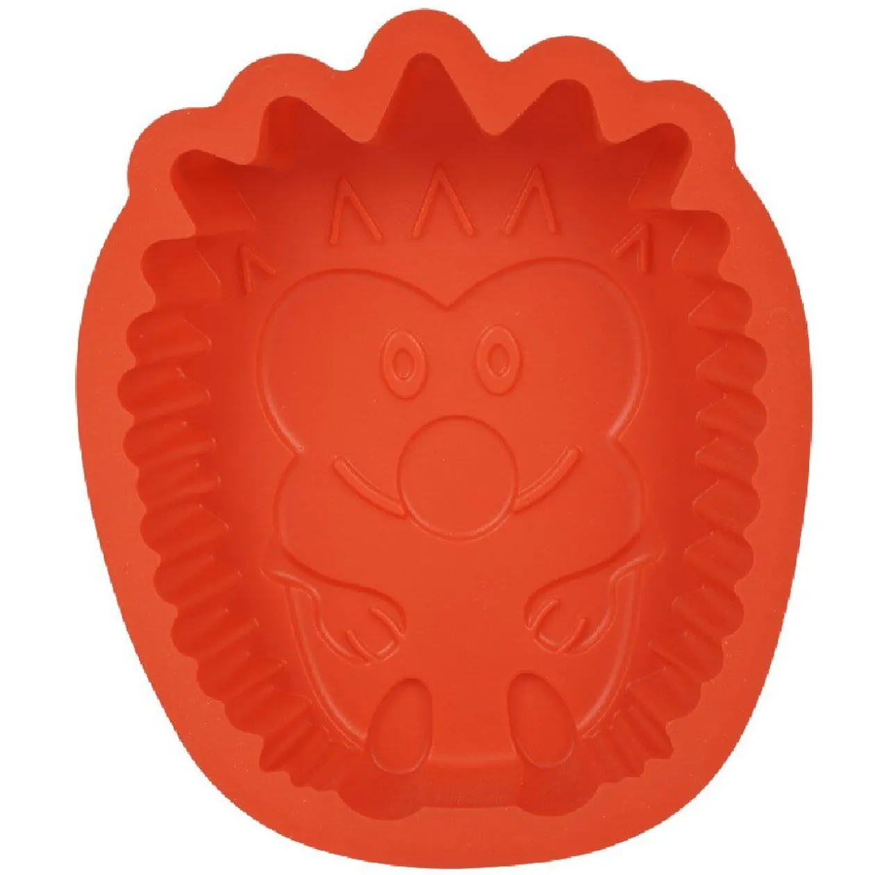 Moule silicone à gateaux forme hérisson rouge.Dim : 20 x 19 x 4,5 cm.