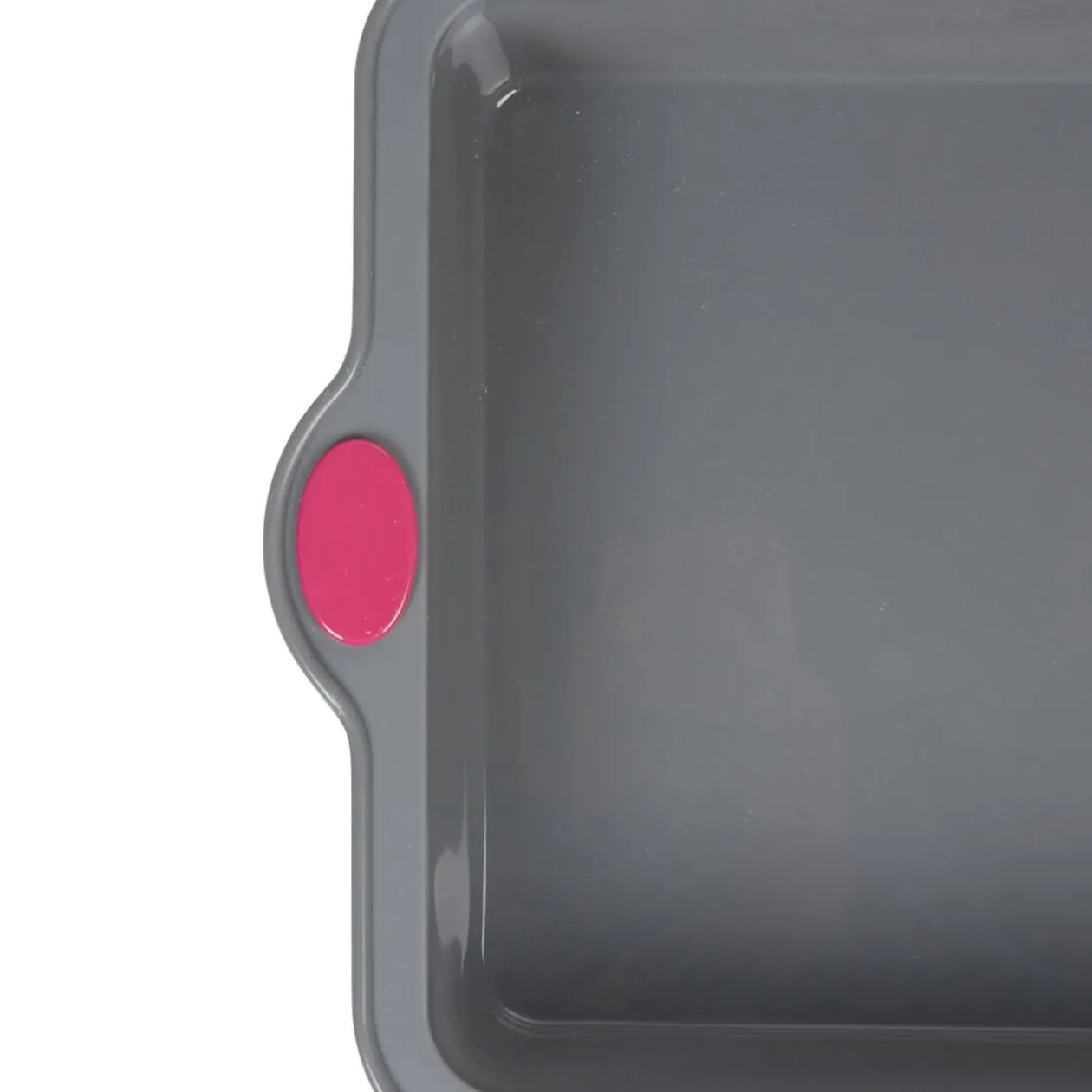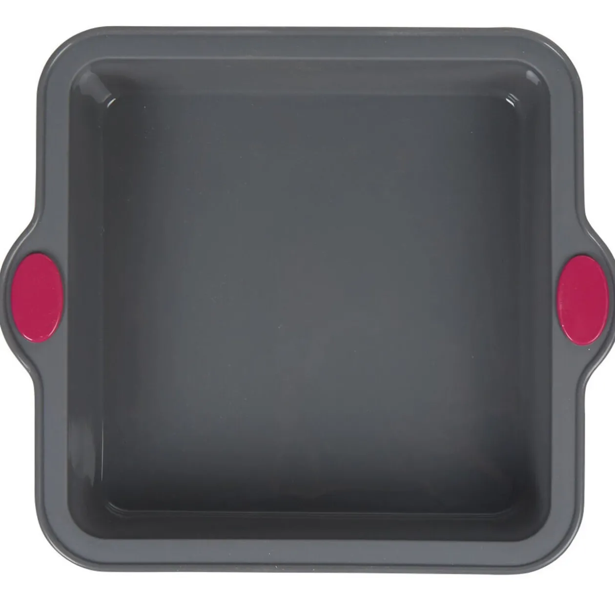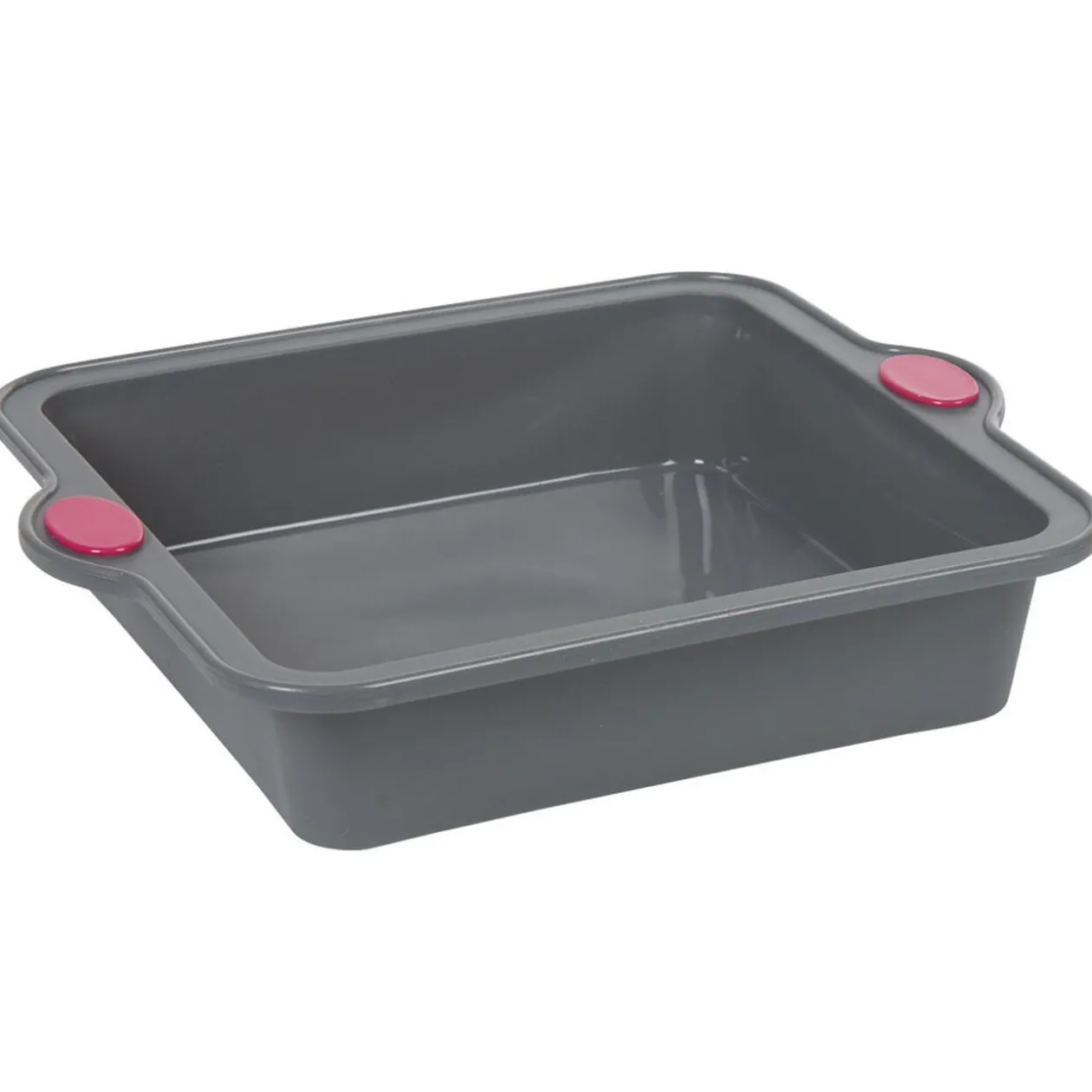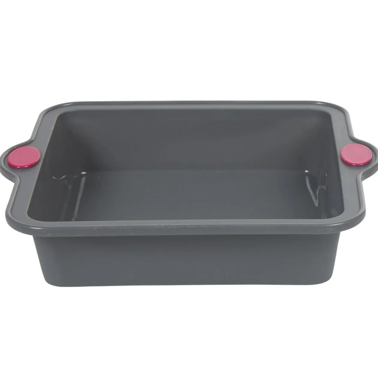 Moule rectangulaire en silicone gris, idéal pour la cuisson de brownie, avec armature rigide en acier pour une meilleure stabilité et prise en main.