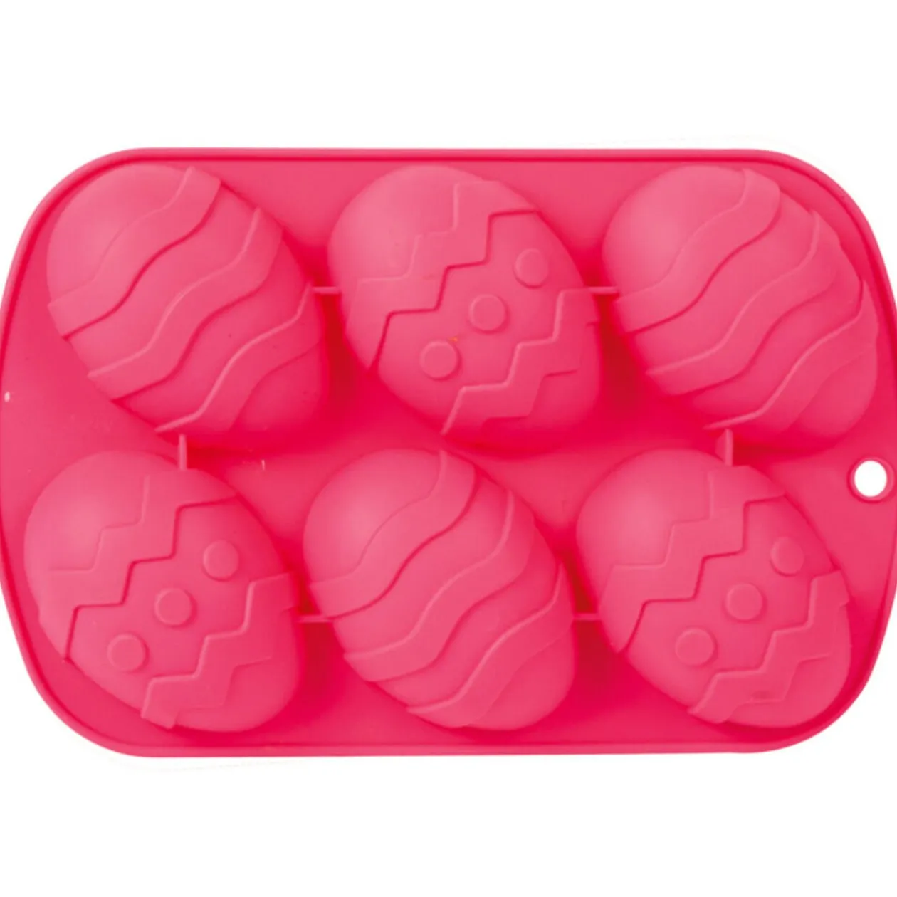 Moule 6 oeufs, dim. 26,5×17 cm, silicone. Diff. coloris, disponibilité selon arrivage.