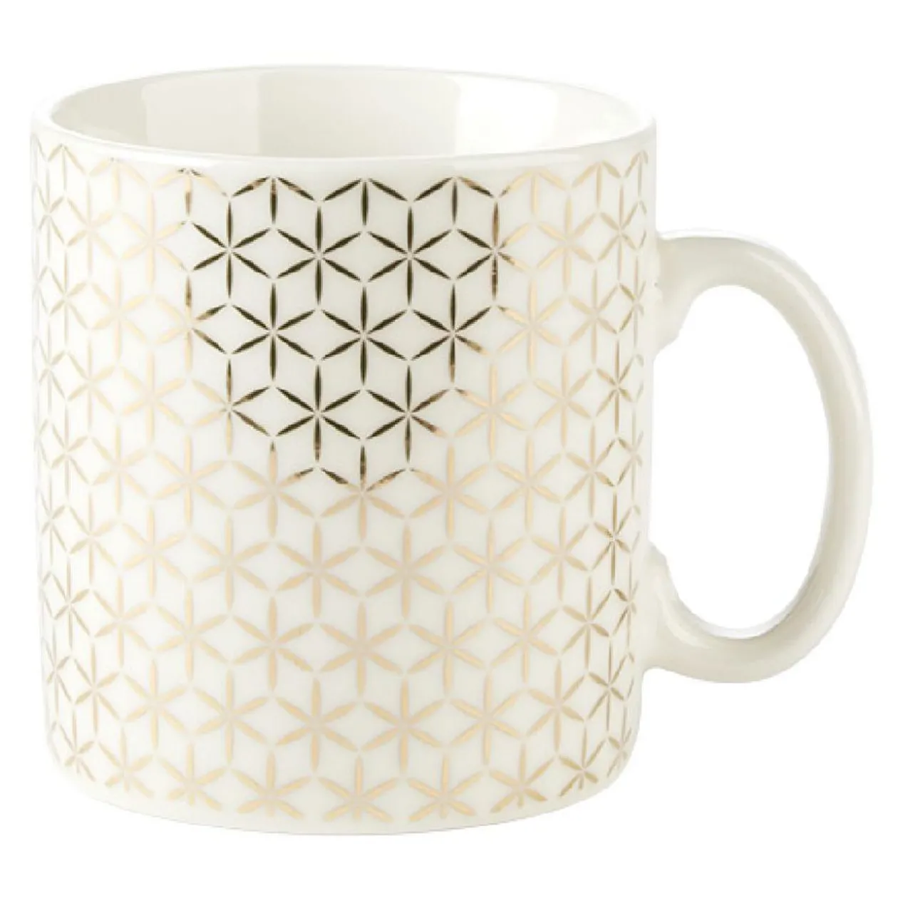 Optez pour ce mug en porcelaine blanche avec motif étoiles dorées. Idéal pour apporter un style moderne et tendance à vos petits-déjeuners et goûters.