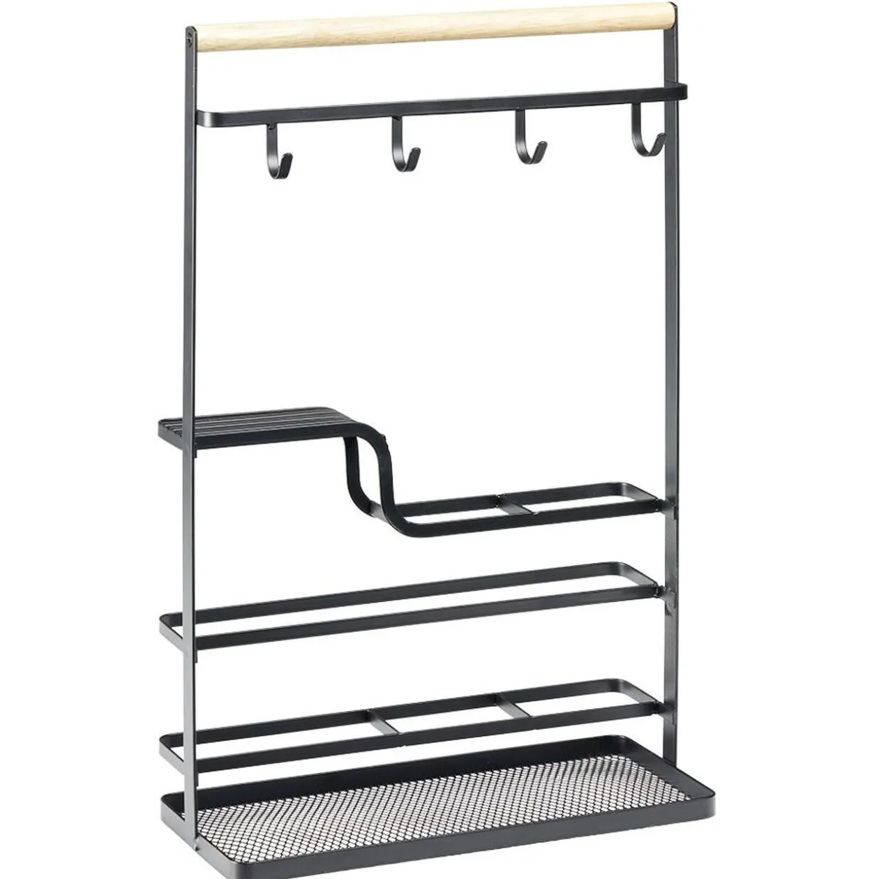 Organiseur pour ustensiles de cuisine en métal noir avec poignée en bois. Pratique, pour garder son plan de travail propre et bien organisé!