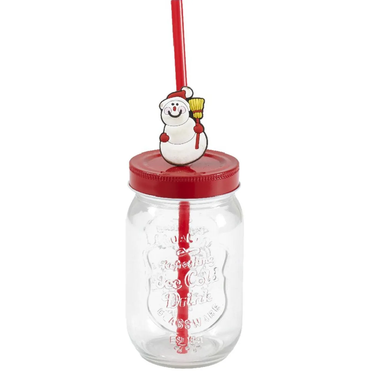 Panier rouge et doré en bois avec inscription « Merry Christmas » et ses 4 emplacements prévus pour recevoir les 4 gobelets inclus avec une paille chacun décorée par une forme de Noël : sapin, Père Noël, sucre d’orge et bonhomme de neige.