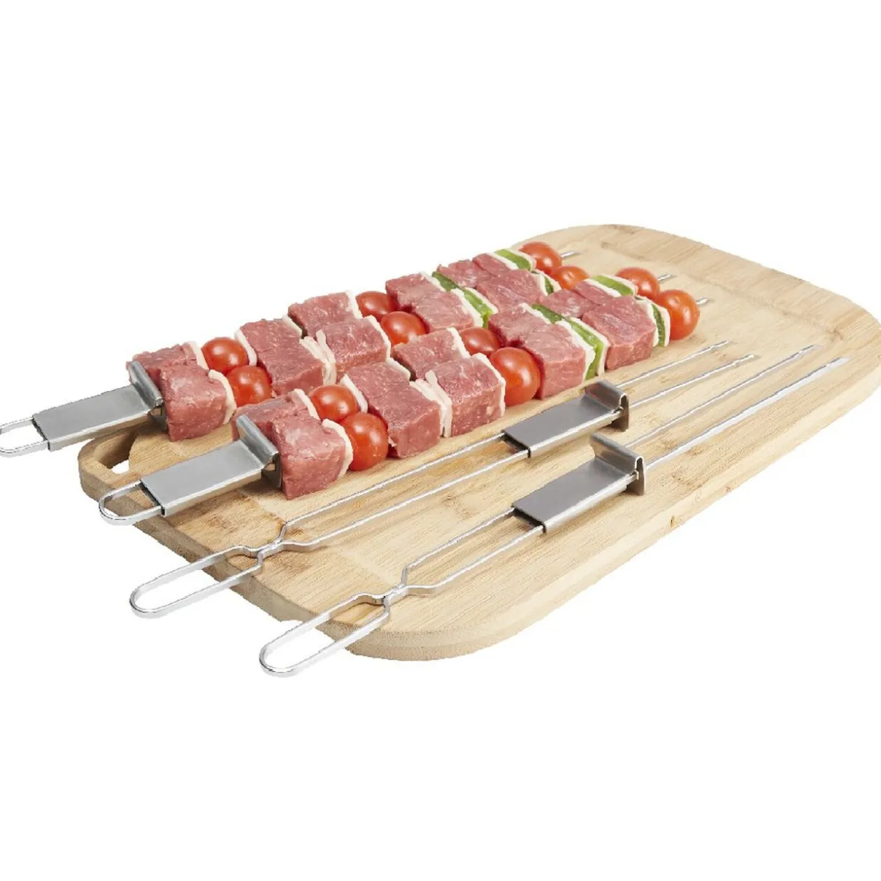 Lot de 4 pics à brochettes doubles, avec bouton poussoir pour retirer et déguster facilement et en toute sécurité votre brochette.