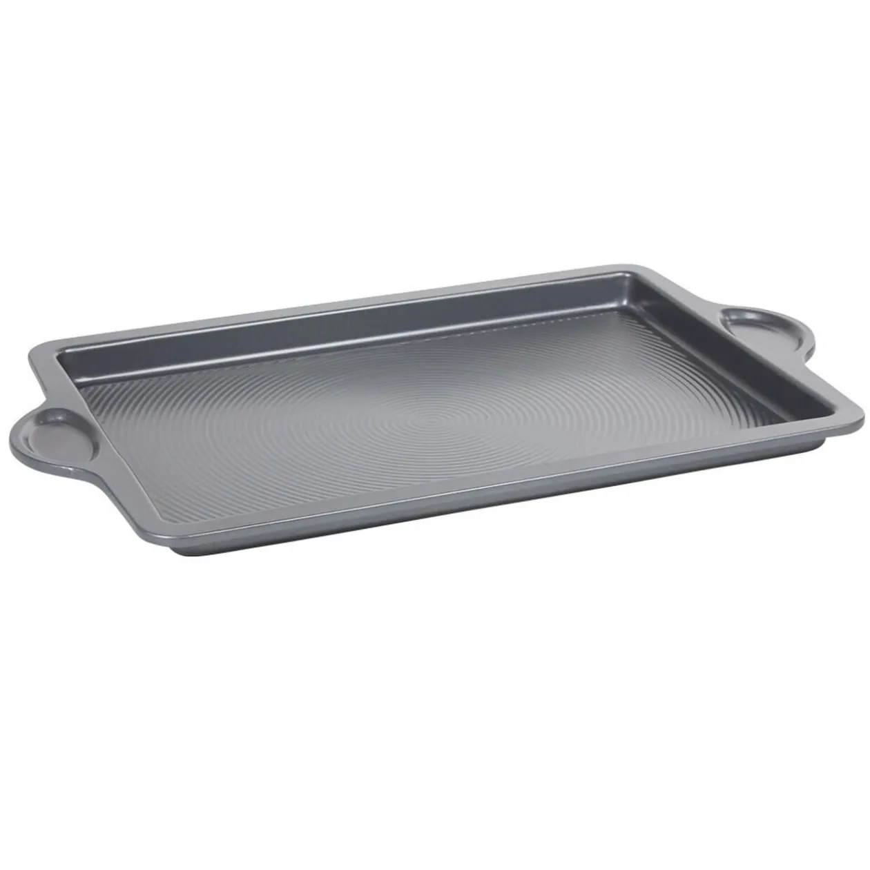 Pratique, cette plaque de cuisson en métal gris comprend un revêtement à fond texturé pour un démoulage facile de vos pâtisseries