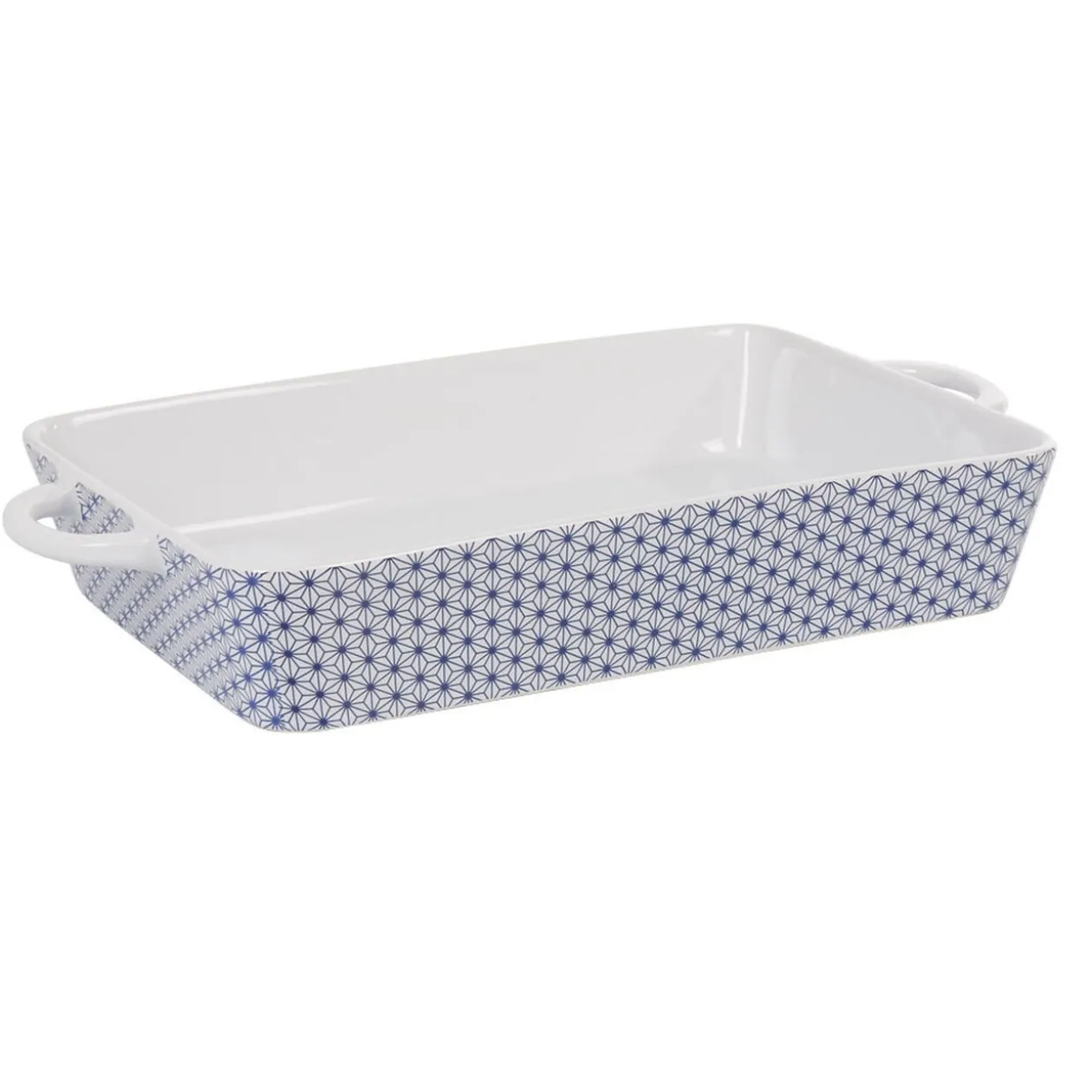 Ce plat à four décoré de motifs bleu foncé conviendra aussi bien pour le service et apportera une touche tendance à la décoration de votre table.