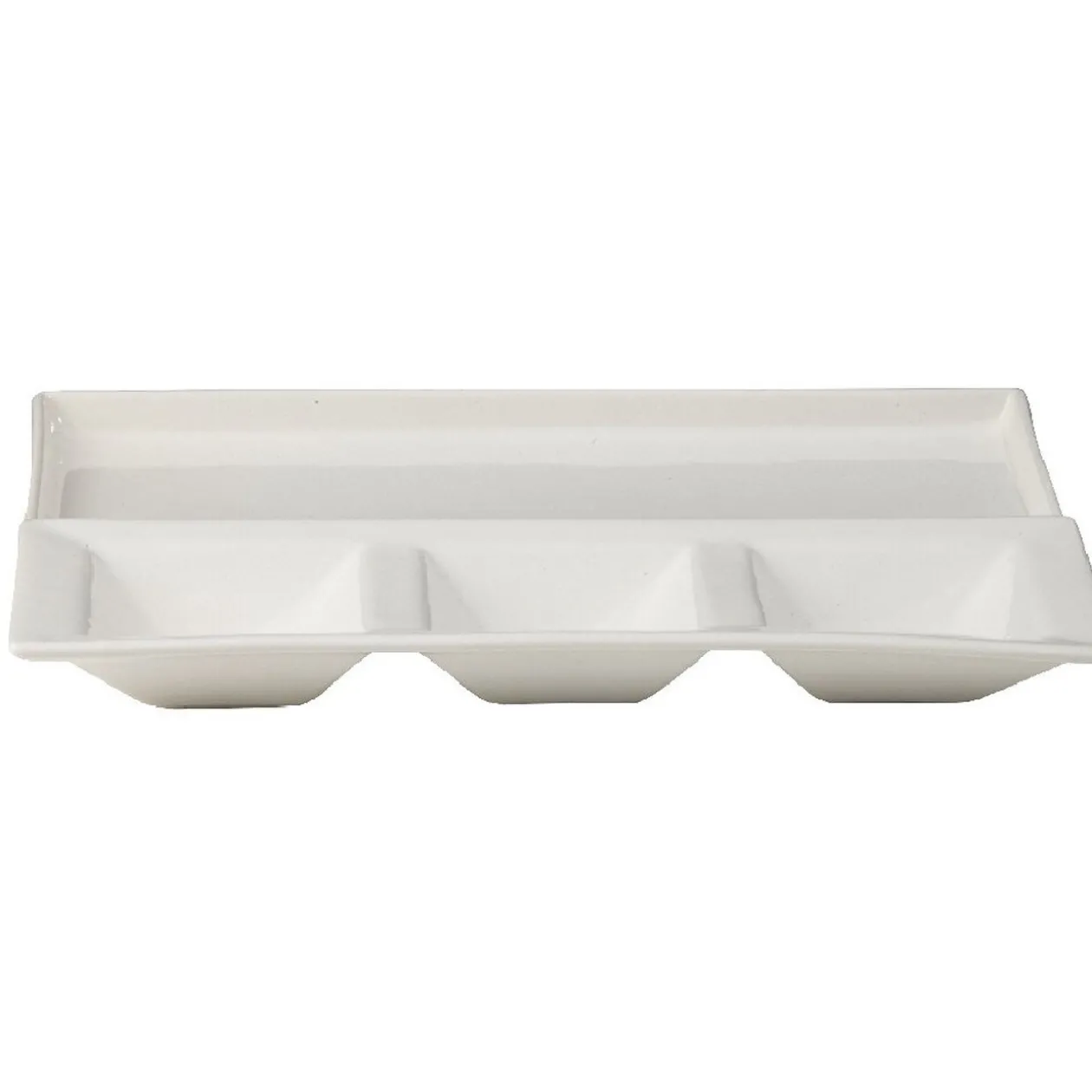 Plat blanc pour barbecue, dim. 26x22x3 cm, porcelaine.