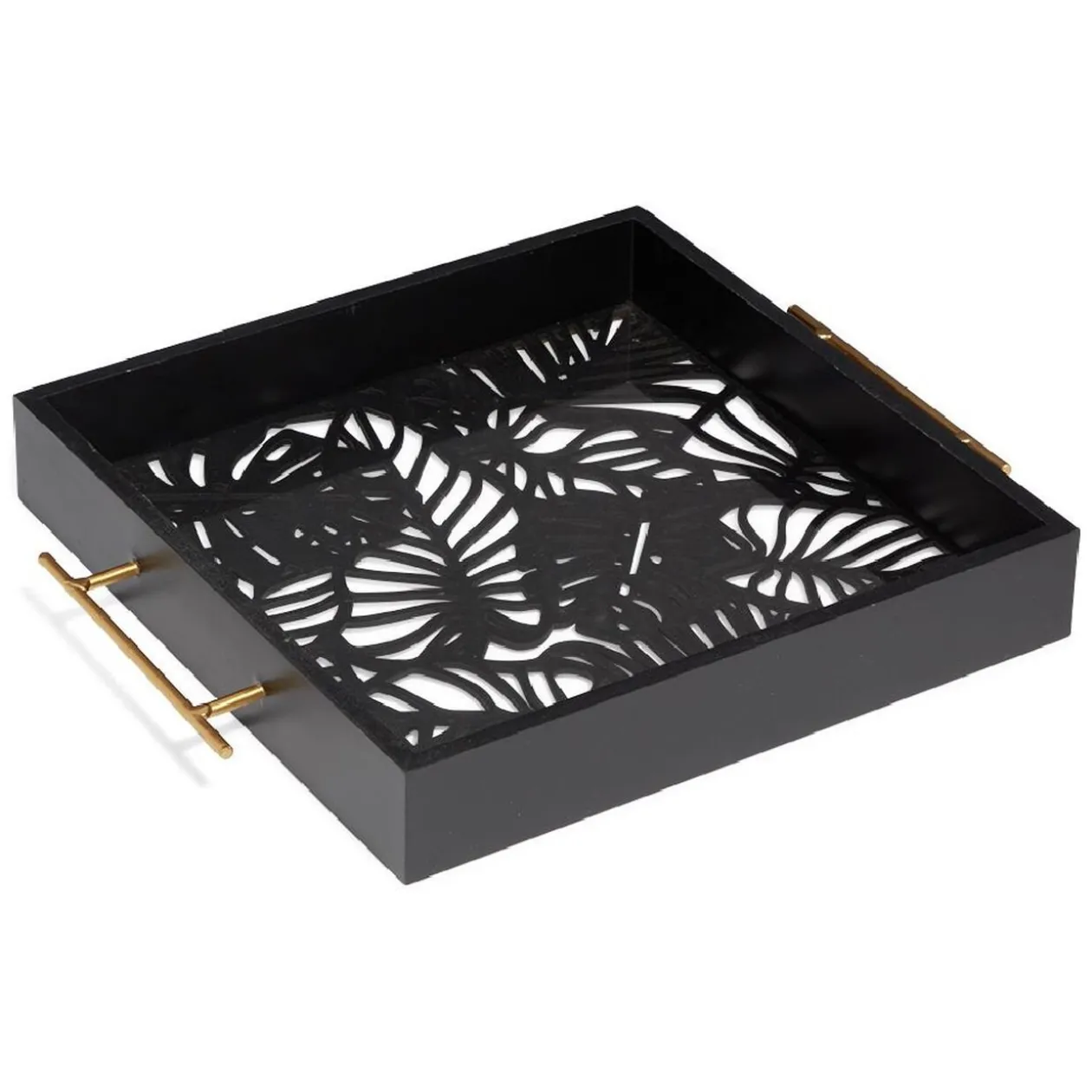 Plateau avec fond en verre laissant transparaître un joli motif végétal ajouré.