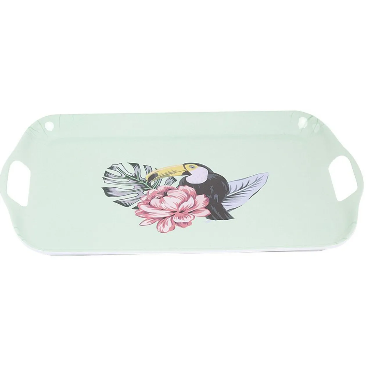 Transportez aisément vos boissons chaudes ou froides grâce à ce joli plateau aux couleurs des tropiques.
