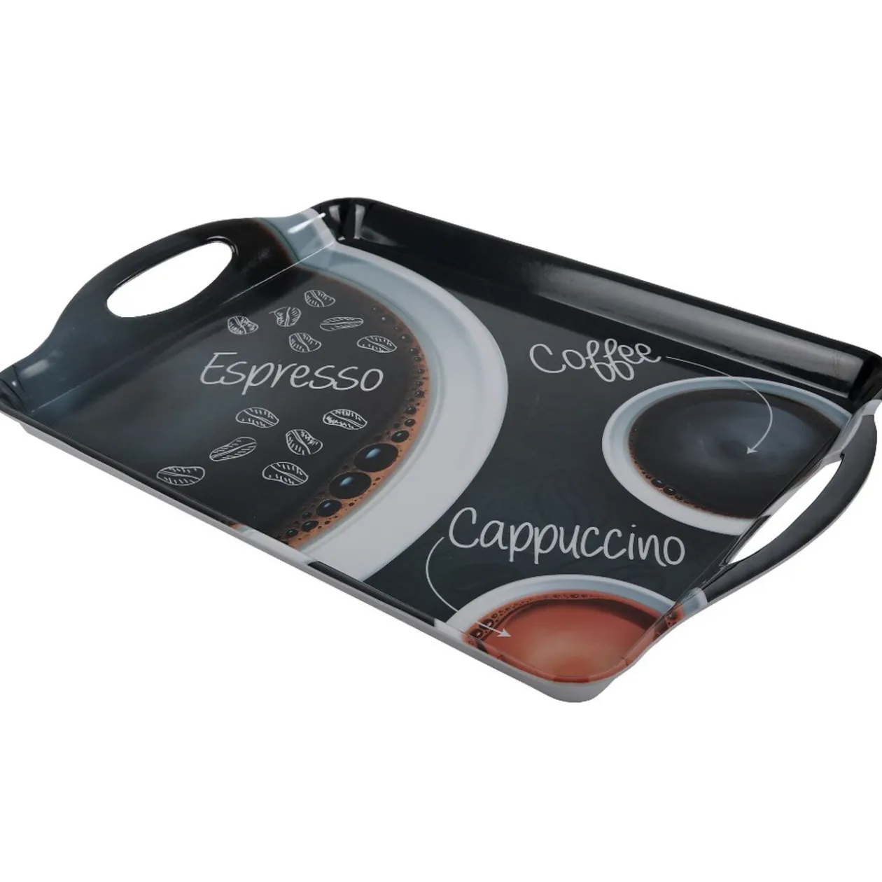 Plateau avec inscriptions et motifs Café, muni de 2 poignées pour une meilleure prise en main.
