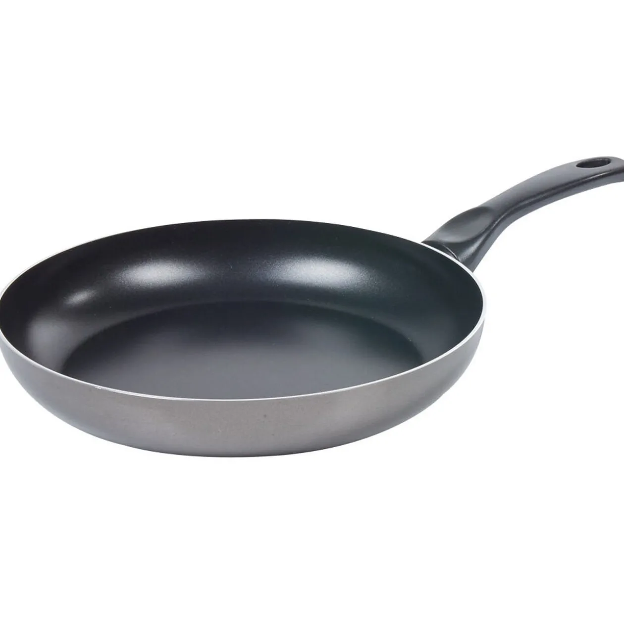 Poêle grise en aluminium, revêtement anti-adhérent, ø 28 cm, tous feux sauf induction.