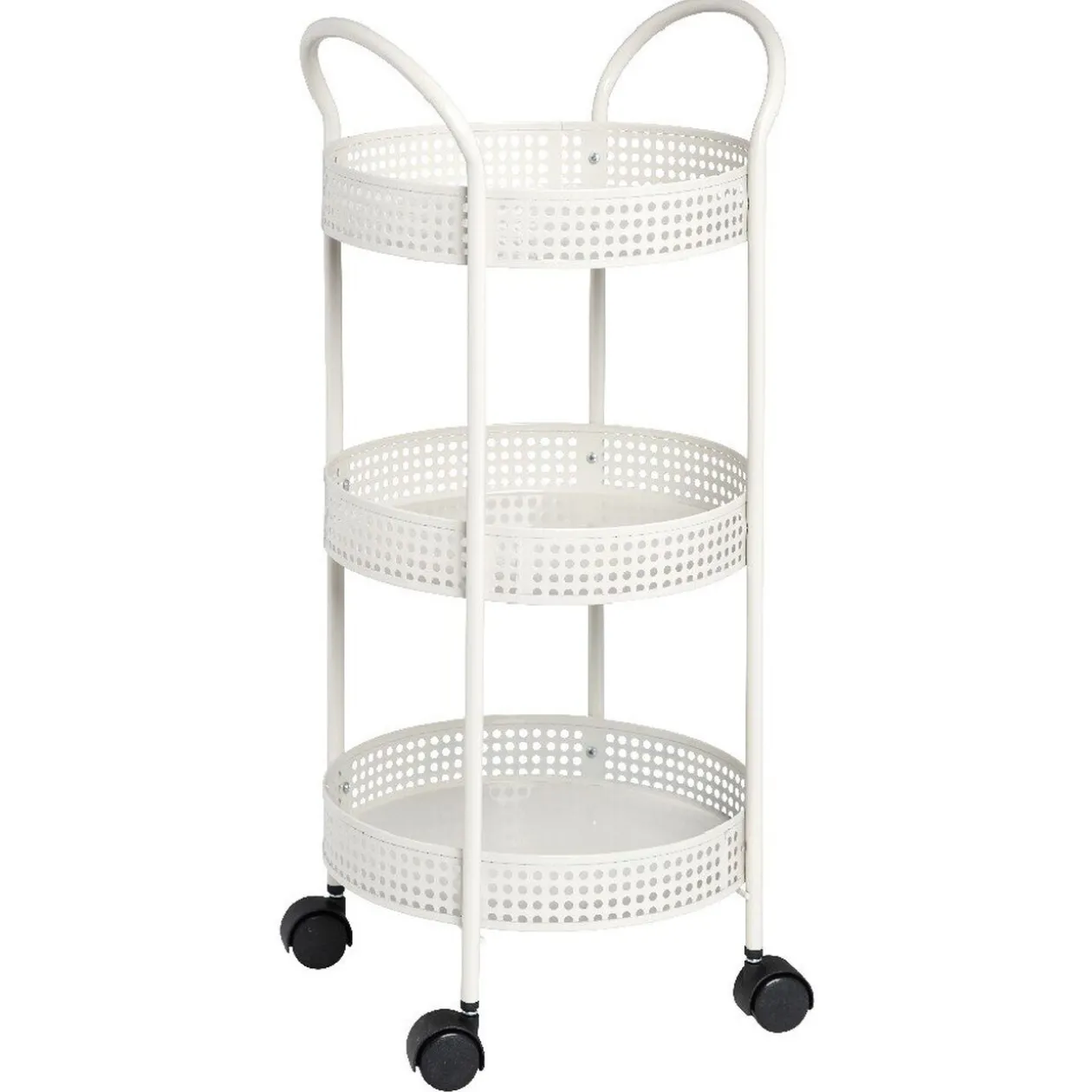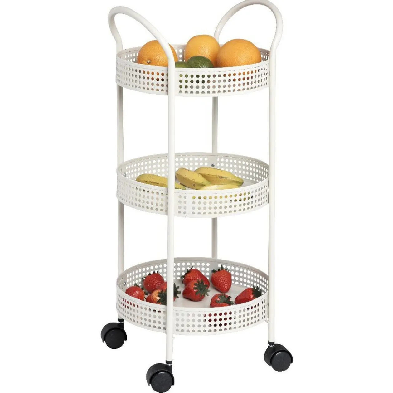 Resserre à légumes rond à 3 niveaux de couleur gris clair, avec roulettes pour pouvoir le déplacer facilement.
