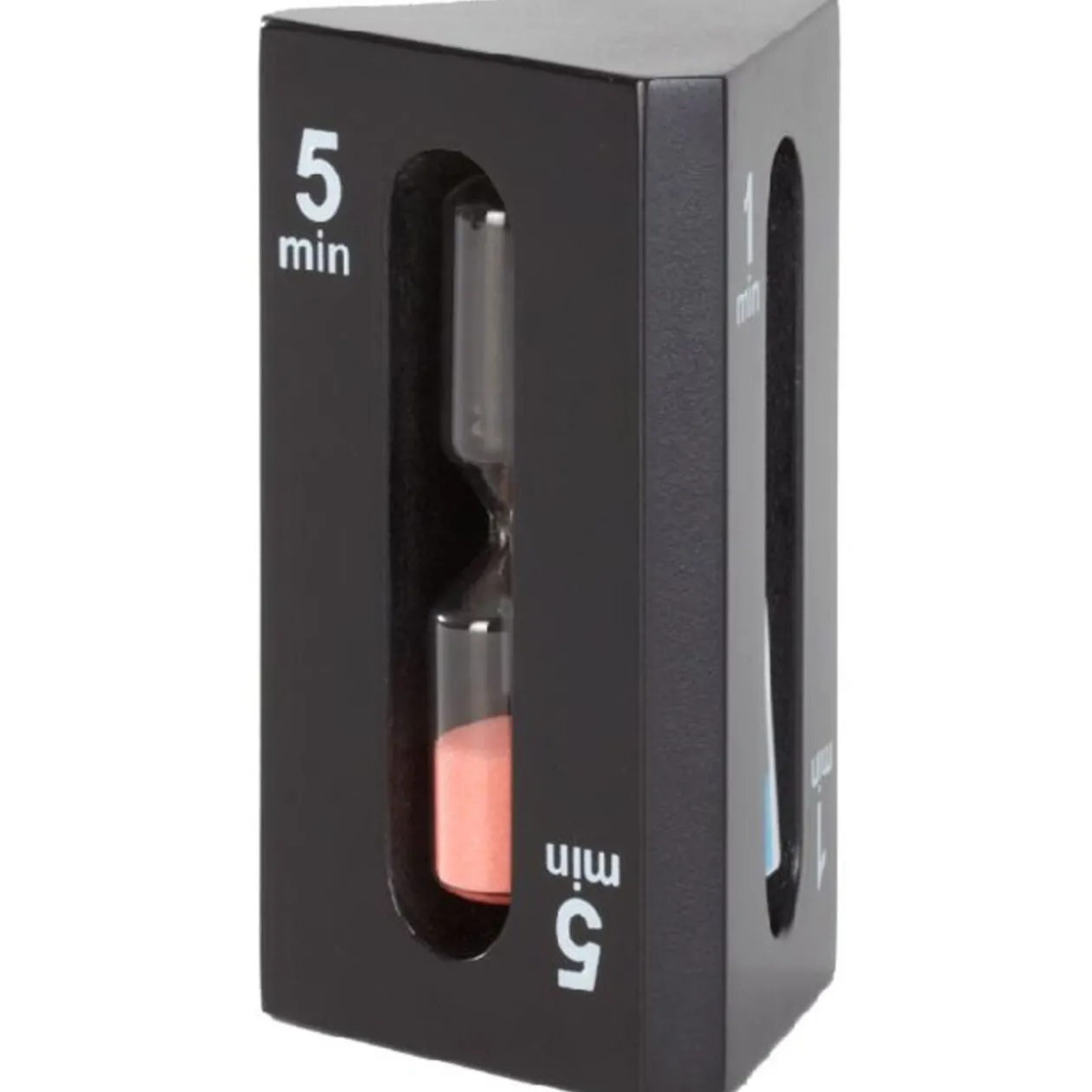 Sablier 3 en 1 triangulaire (1 min, 3 min et 5 min), dim. 6xh10.5 cm, plastique