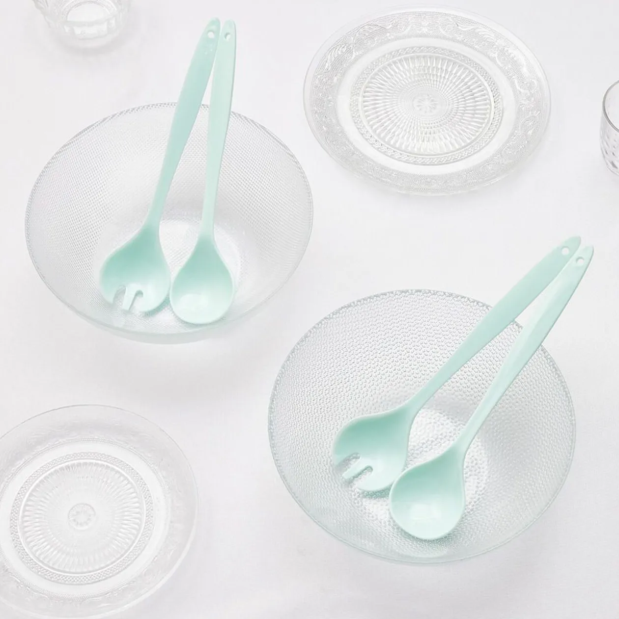Lot de 2 saladiers en verre au design reliefé transparent. Idéal en plat de service ou pour vos préparations.
