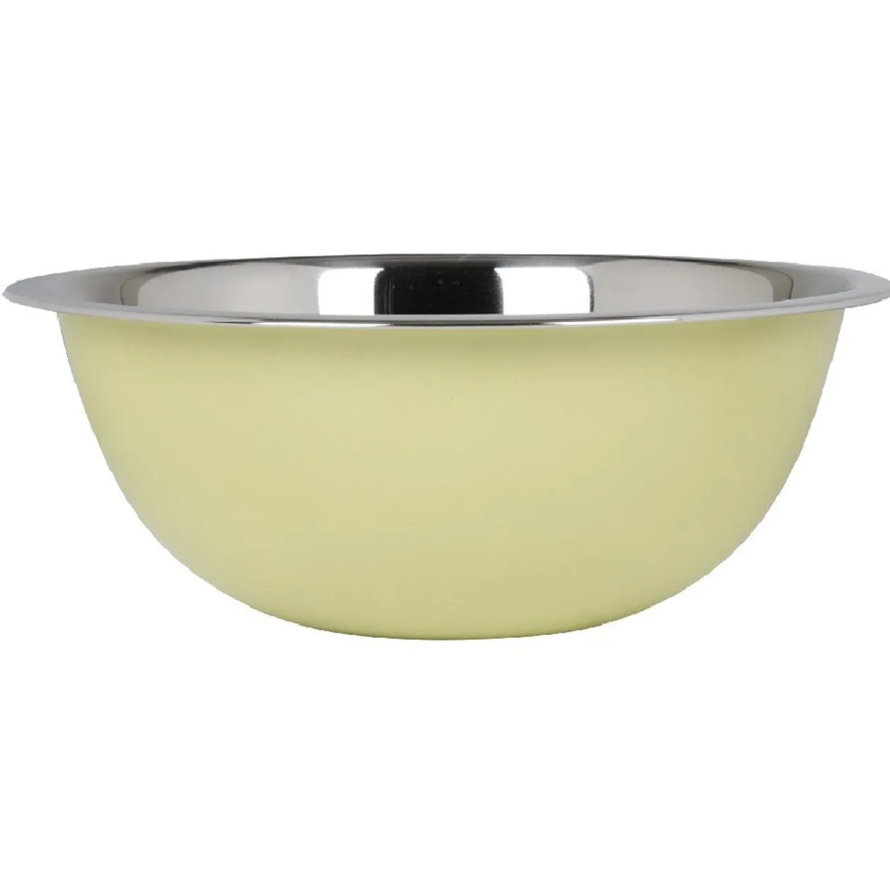 Ensemble en inox composé de 1 passoire, 1 saladier et 1 porte-ustensiles vert design feuilles.