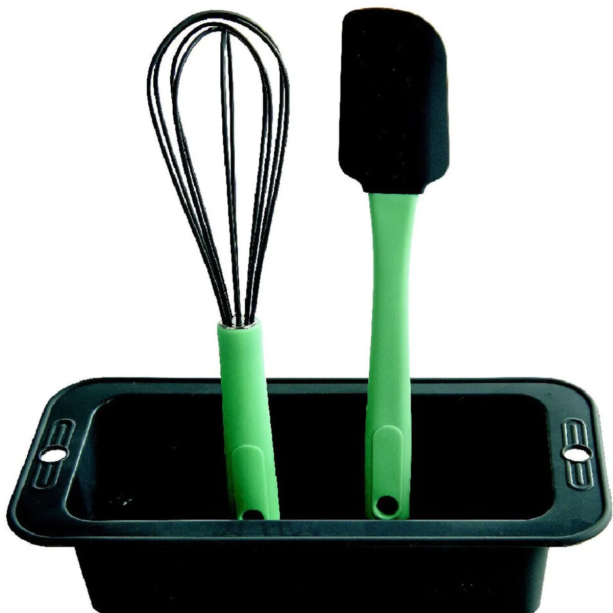 Un petit set indispensable pour réaliser de bons cakes ou des marbrés ! Un moule en silicone, un fouet et une spatule, idéal comme cadeau pour un débutant en pâtisserie ou un enfant.