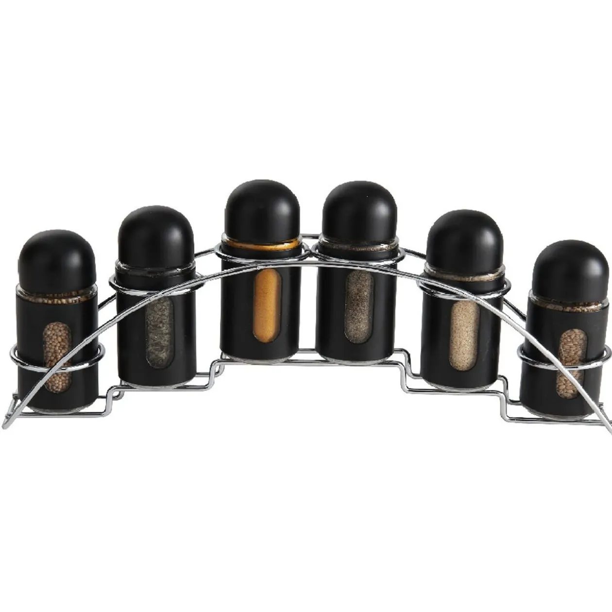 Pour porter vos épices joliment, ce support à épices en forme de pont et ses 6 pots se fera pratique et charmeur dans votre cuisine.