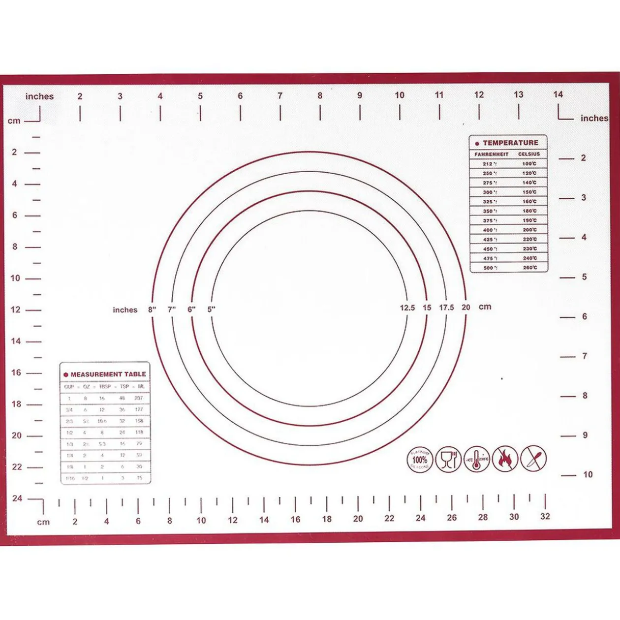 Tapis de pâtisserie en silicone blanc et rouge, idéal pour tester vos meilleures recettes de gâteaux.
