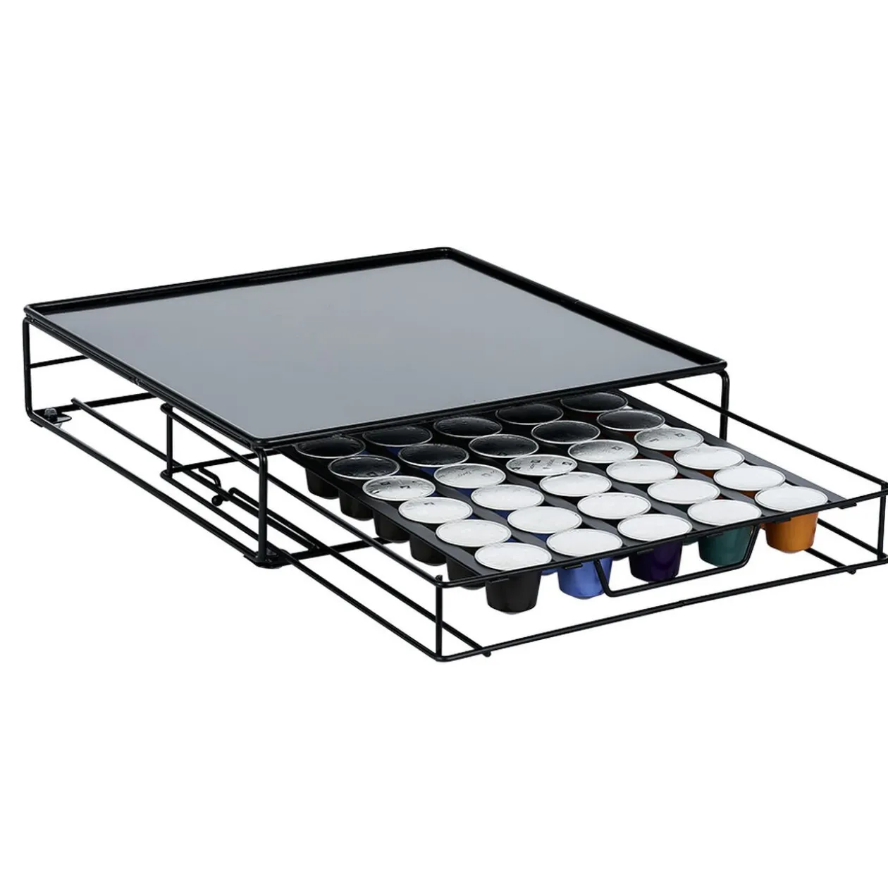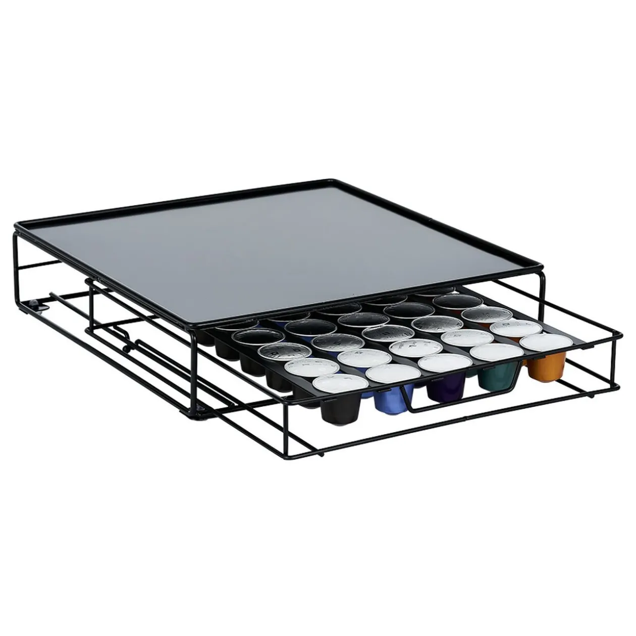 Ce superbe tiroir pour capsules de café en métal noir sera très pratique pour poser votre cafetière dessus. Son design chic et moderne apportera une belle touche déco à votre rangement de cuisine.