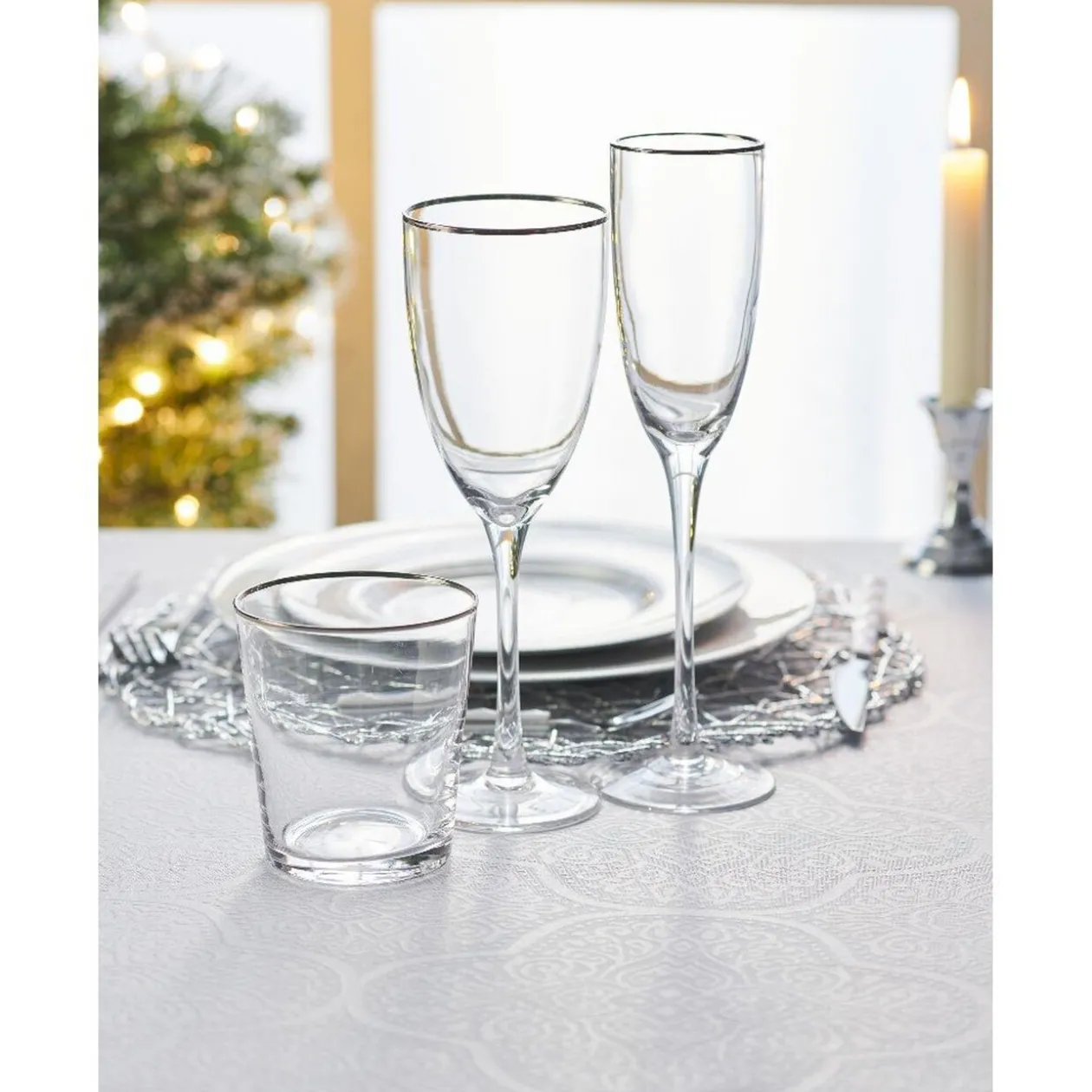 Dégustez un bon vin avec style avec ce verre à pied transparent à liseré argenté.