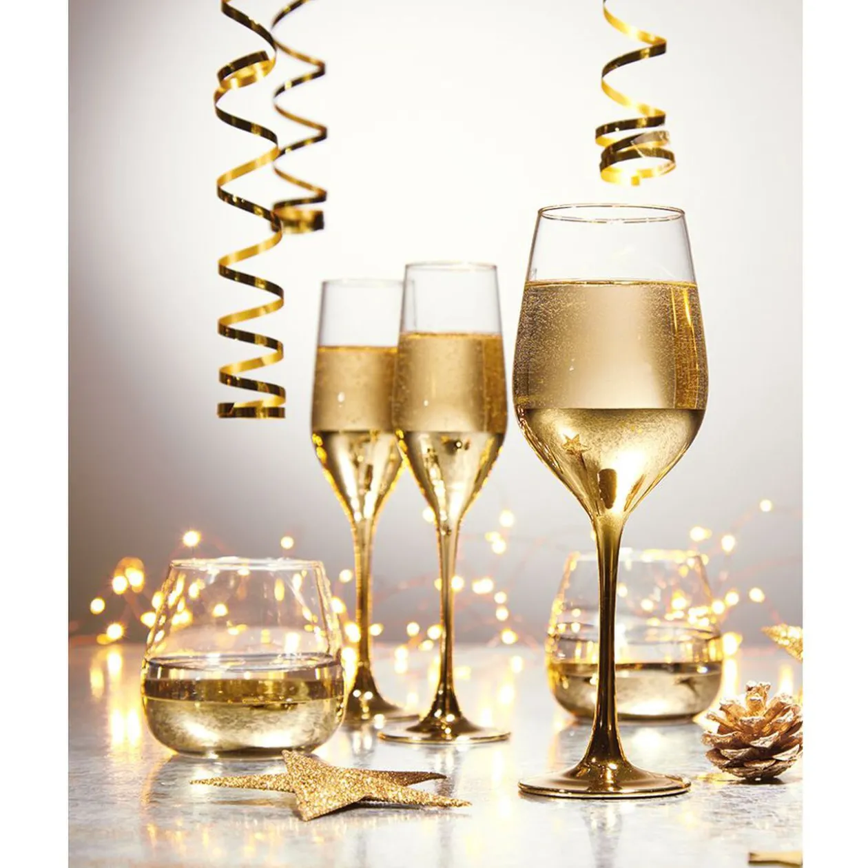 Lot de 4 verres à pied en verre Oksana dorés d’une contenance de 35 cL.