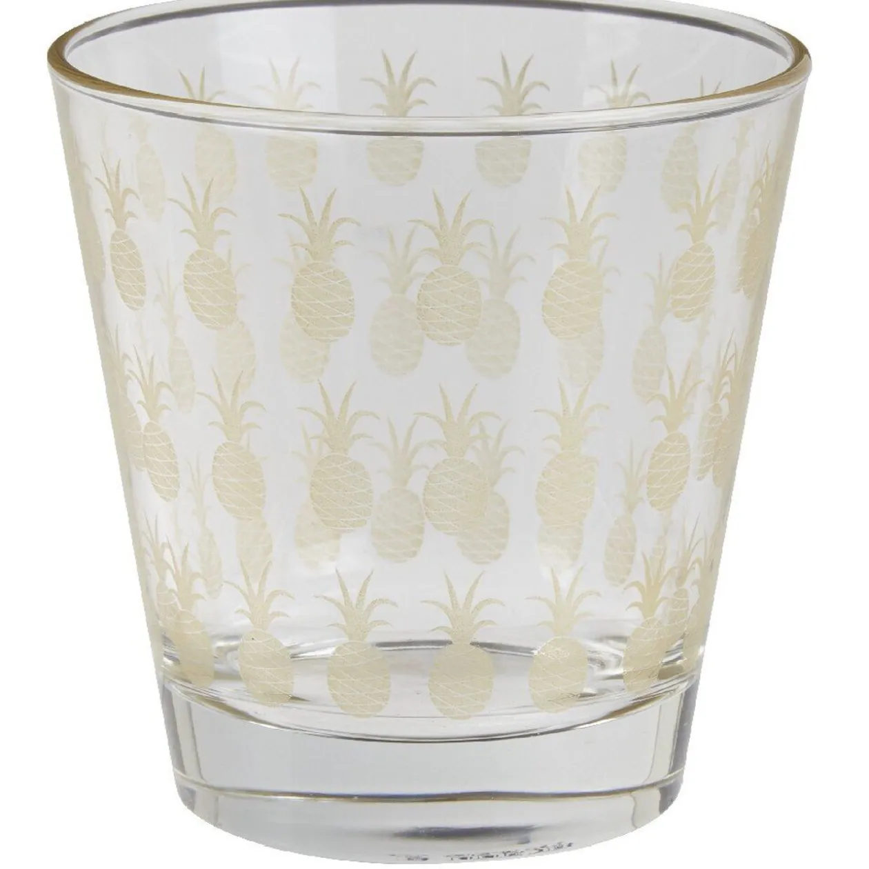 Lot de 3 verres bas 25 cl style tropical avec petits motifs ananas dorés sur le contour.