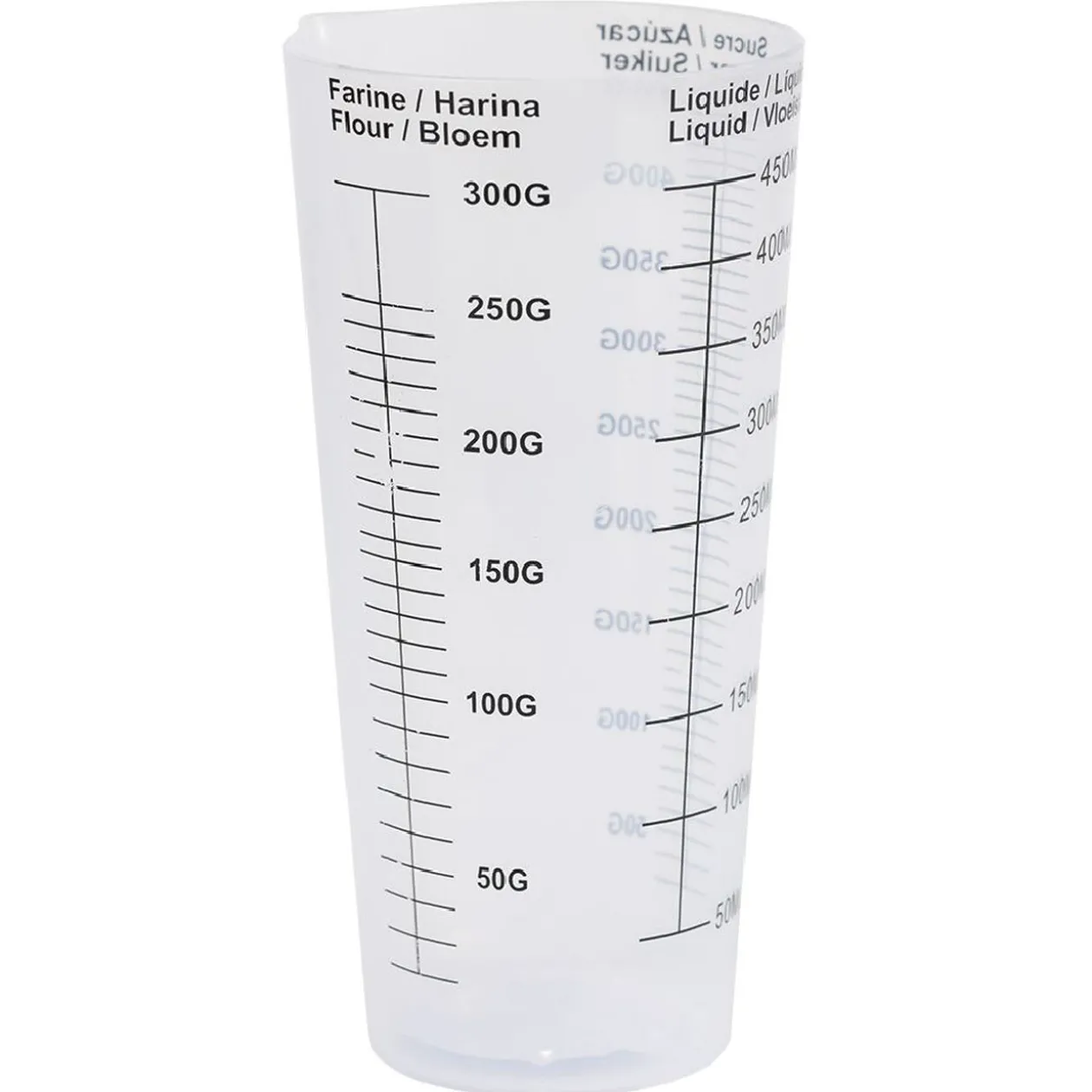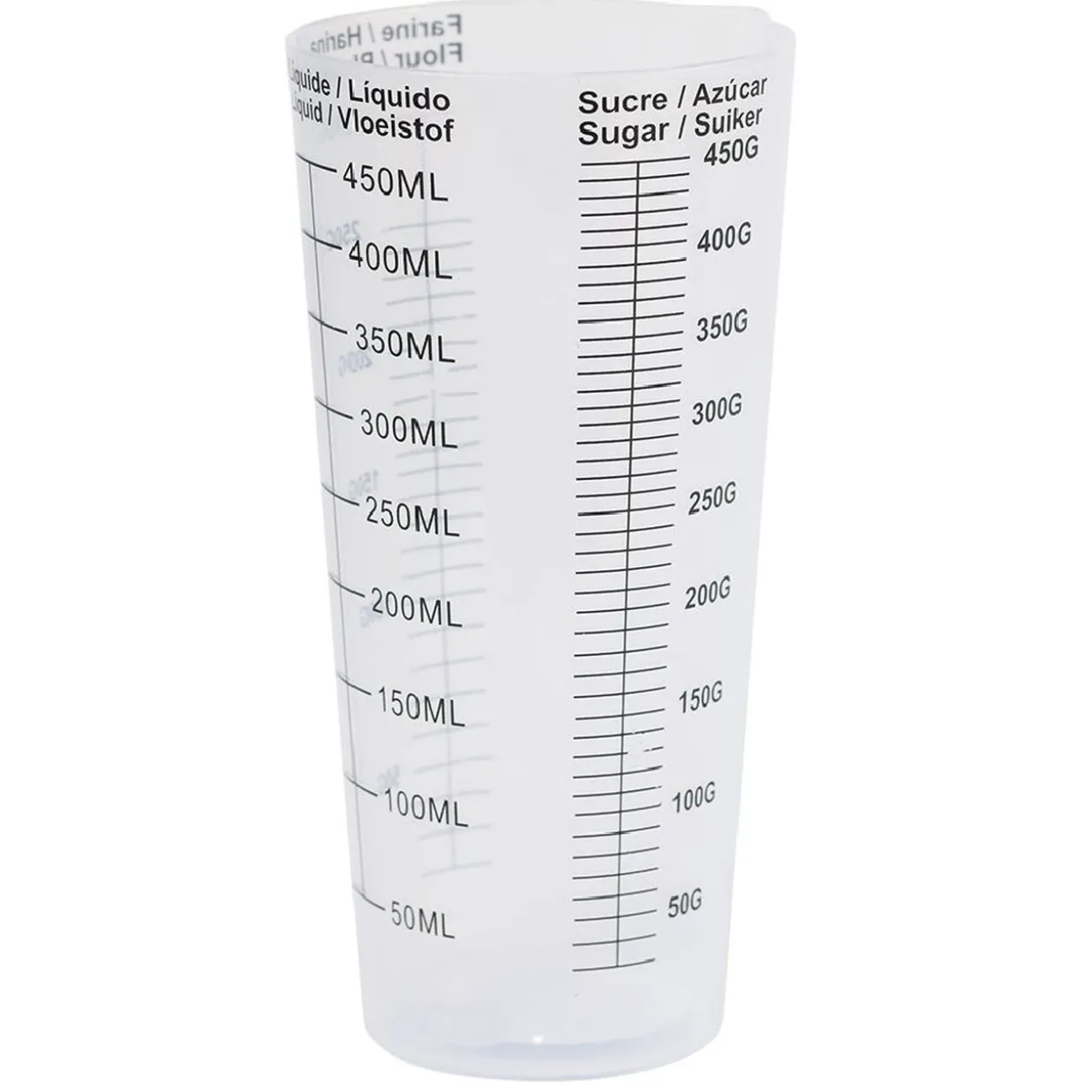 Verre doseur en plastique blanc.