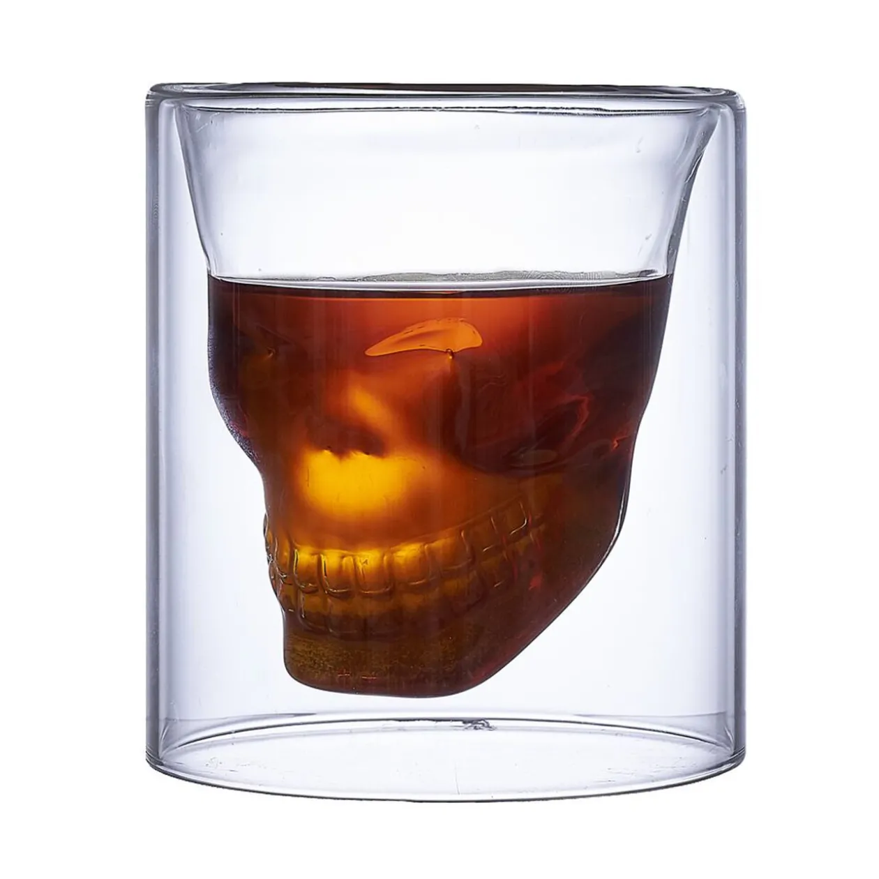 Verre transparent à double paroi design tête de mort. Terriblement original à l’occasion de Halloween !