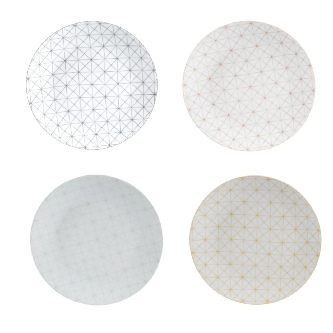 Succombez à la tendance mix and match avec ce lot de 4 assiettes au design géométrique dépareillé, 4 coloris différents, idéal pour égayer la table avec un motif unique à chaque assiette!
