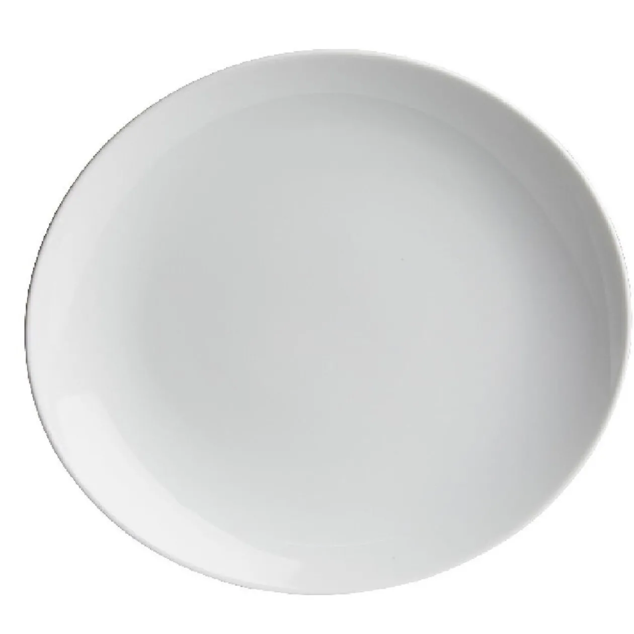 Cette assiette à steak ronde de couleur blanche unie trouvera facilement sa place sur une table simple et raffinée.