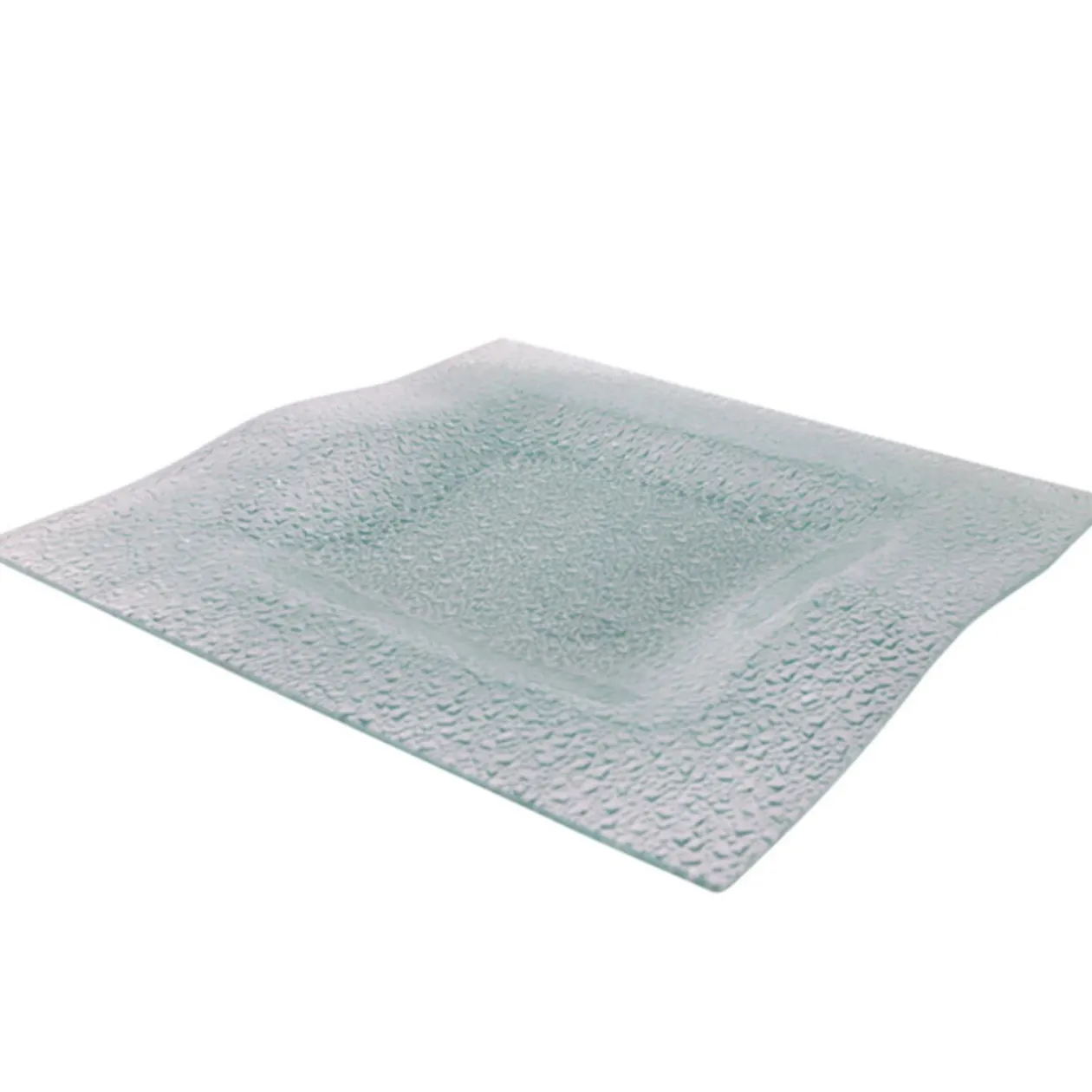 Assiette de présentation carrée, dim. 30×30 cm, verre.