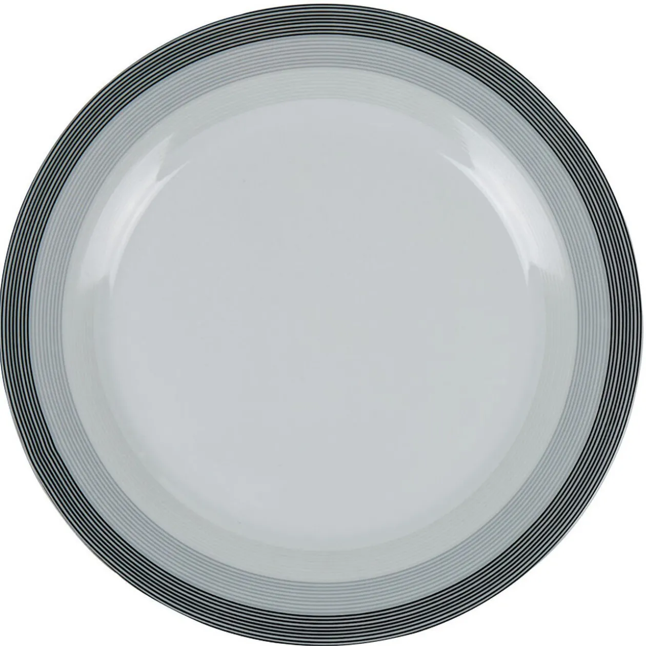 Assiette plate ronde blanche et grise Sérénité Rayures, dim. Ø27xh.2,4 cm, porcelaine.