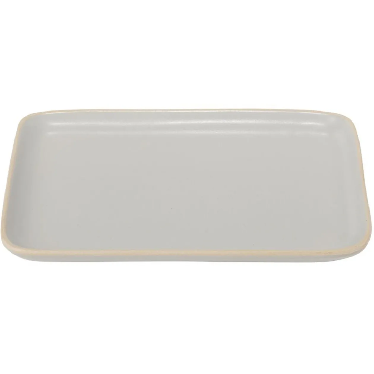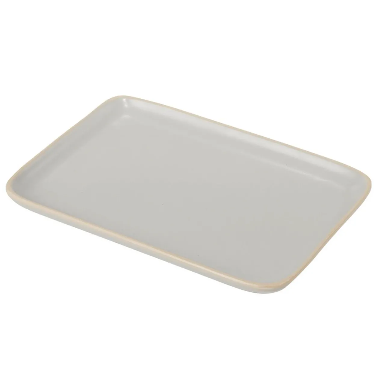 Cette assiette rectangulaire en faïence de couleur grise est idéale pour un service de table moderne.