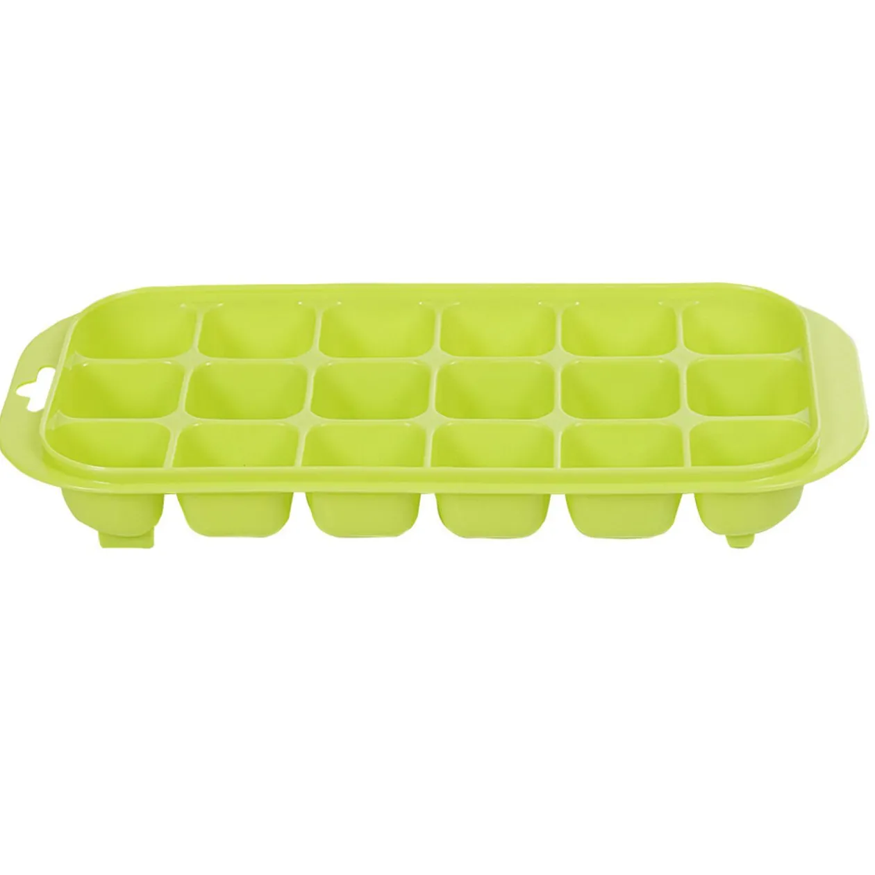 Facile à remplir, fabriquez jusqu’à 36 glaçons avec ce set de 2 bacs en plastique vert.