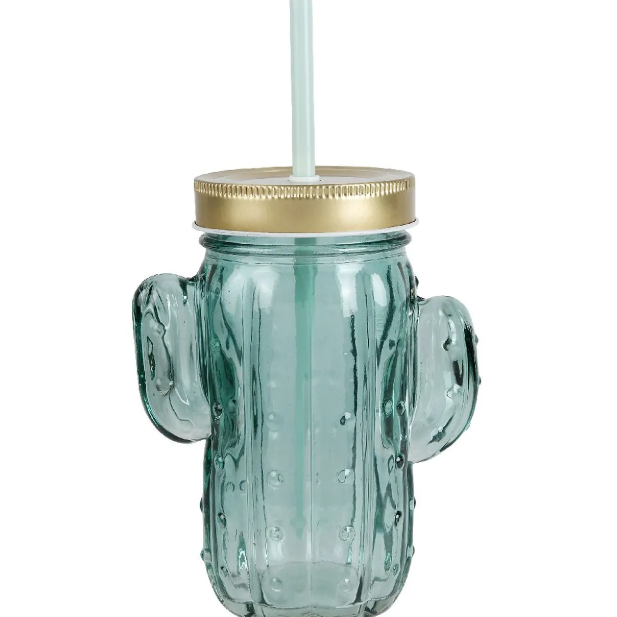 Bocal en forme de cactus, avec possibilité de fermer le couvercle où un emplacement est conçu pour passer la paille qui est incluse.