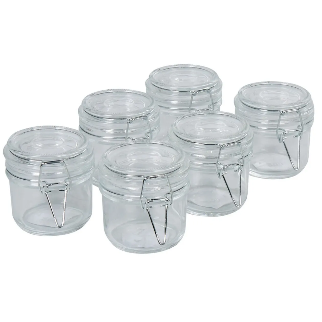 6 bocaux transparent avec fermeture métallique.