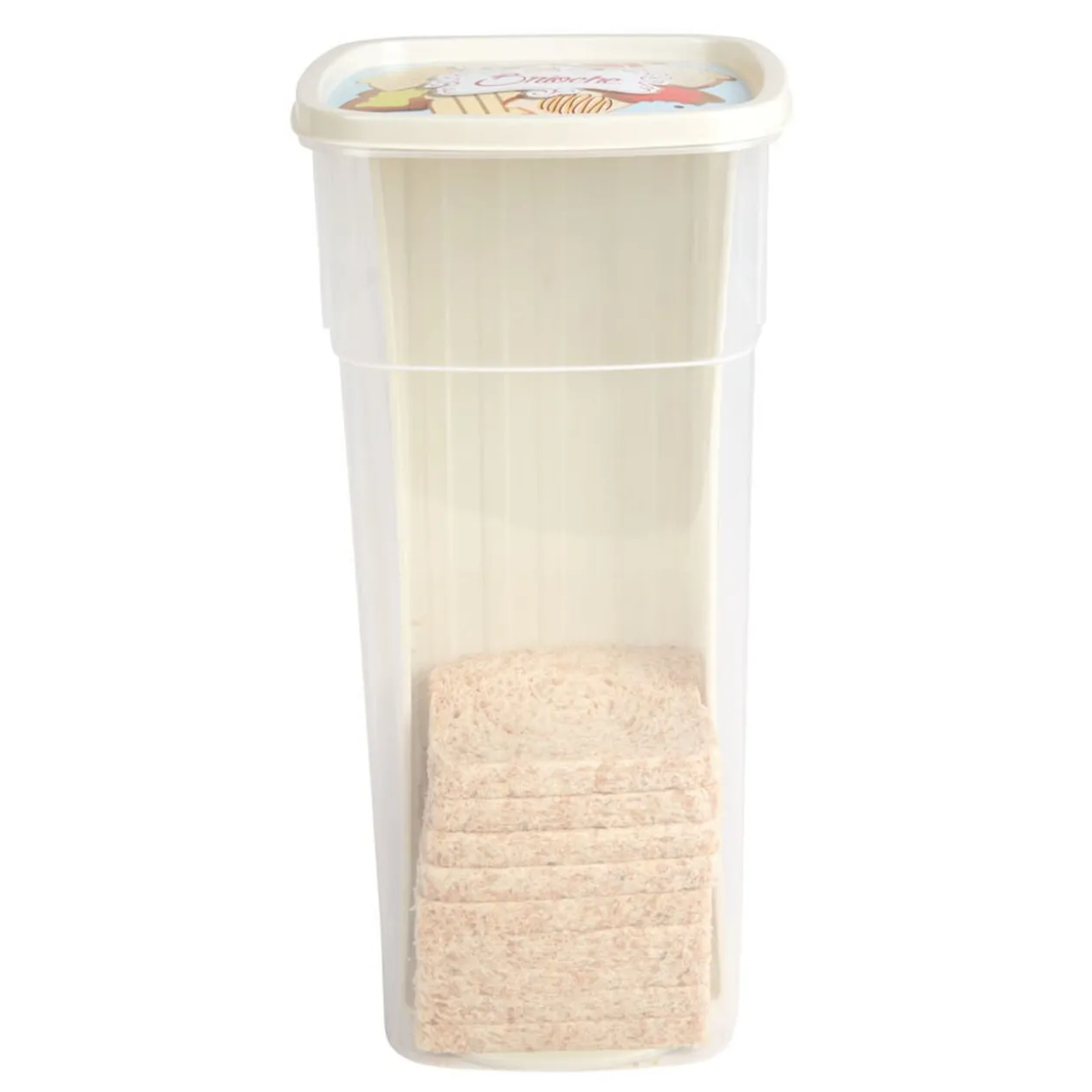Boîte à pains de mie et brioches blanche et transparente avec couvercle décoré.