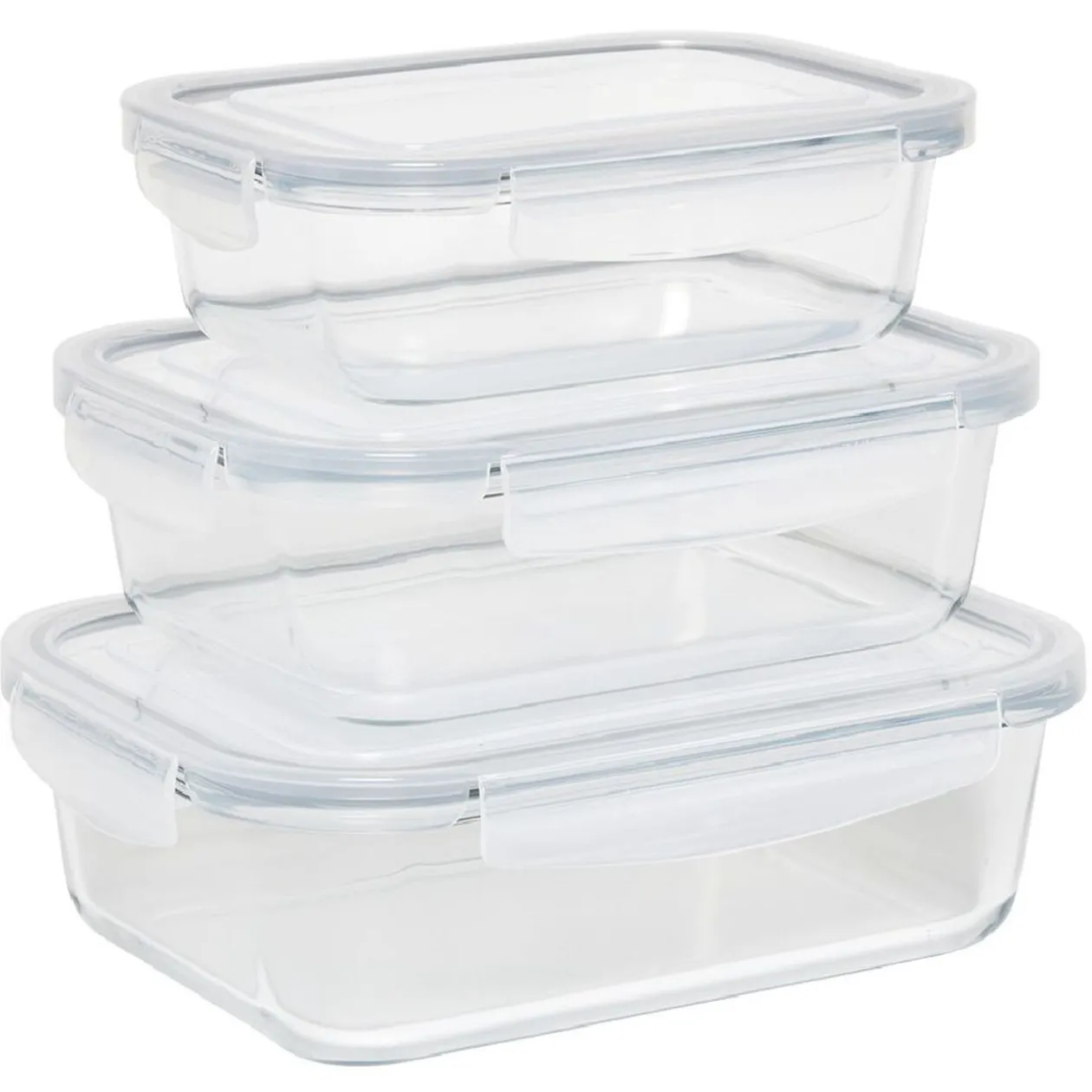 Lot de 3 boîtes alimentaires en verre de différentes tailles. Faciles à nettoyer, elles sont parfaites pour la conservation de tous vos plats.