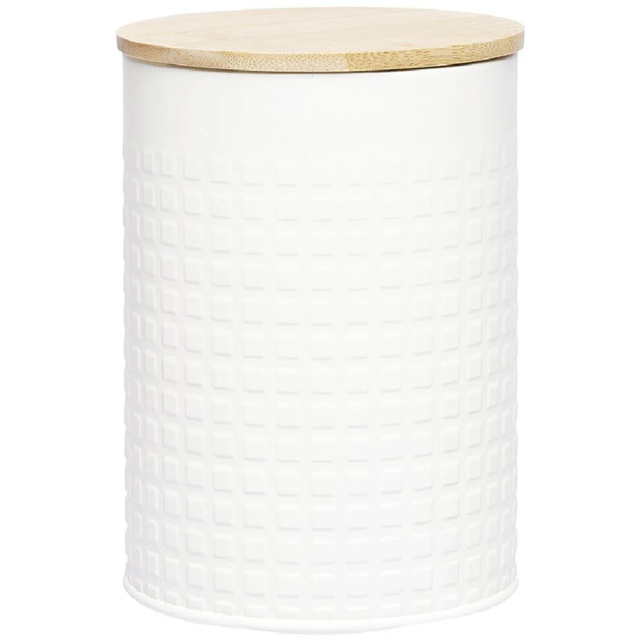 Boîte ronde ou carrée – Dim. 11,5×11,5×14,5 cm ou Ø 11×11,5 cm, bambou, métal – Existe en bleu ou blanc