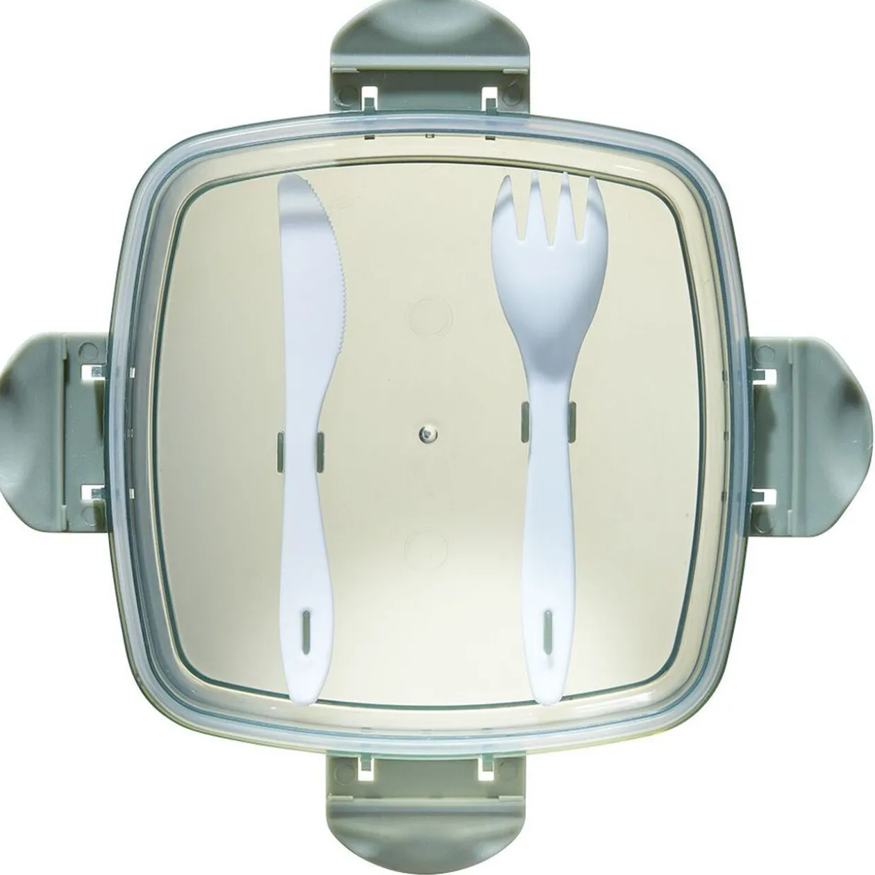 Boîte lunch d’une capacité de 1L, avec emplacements pour couverts intégrés et bloc réfrigérant.