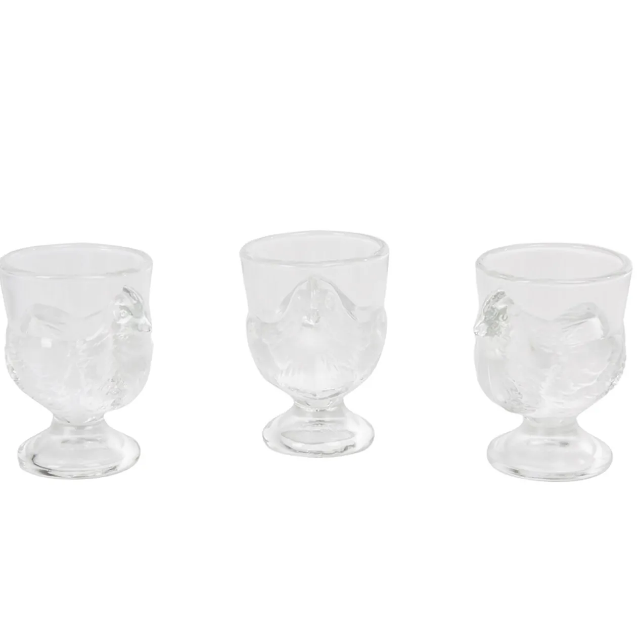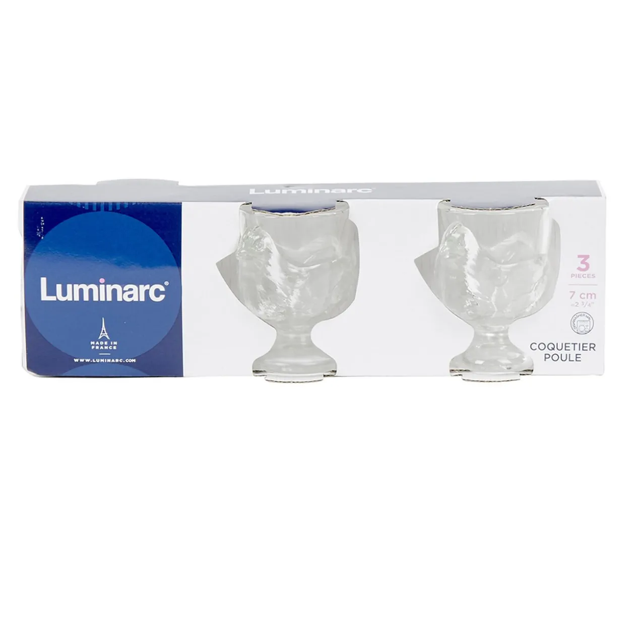 Lot de 3 coquetiers design poule en verre tranparent par Luminarc.