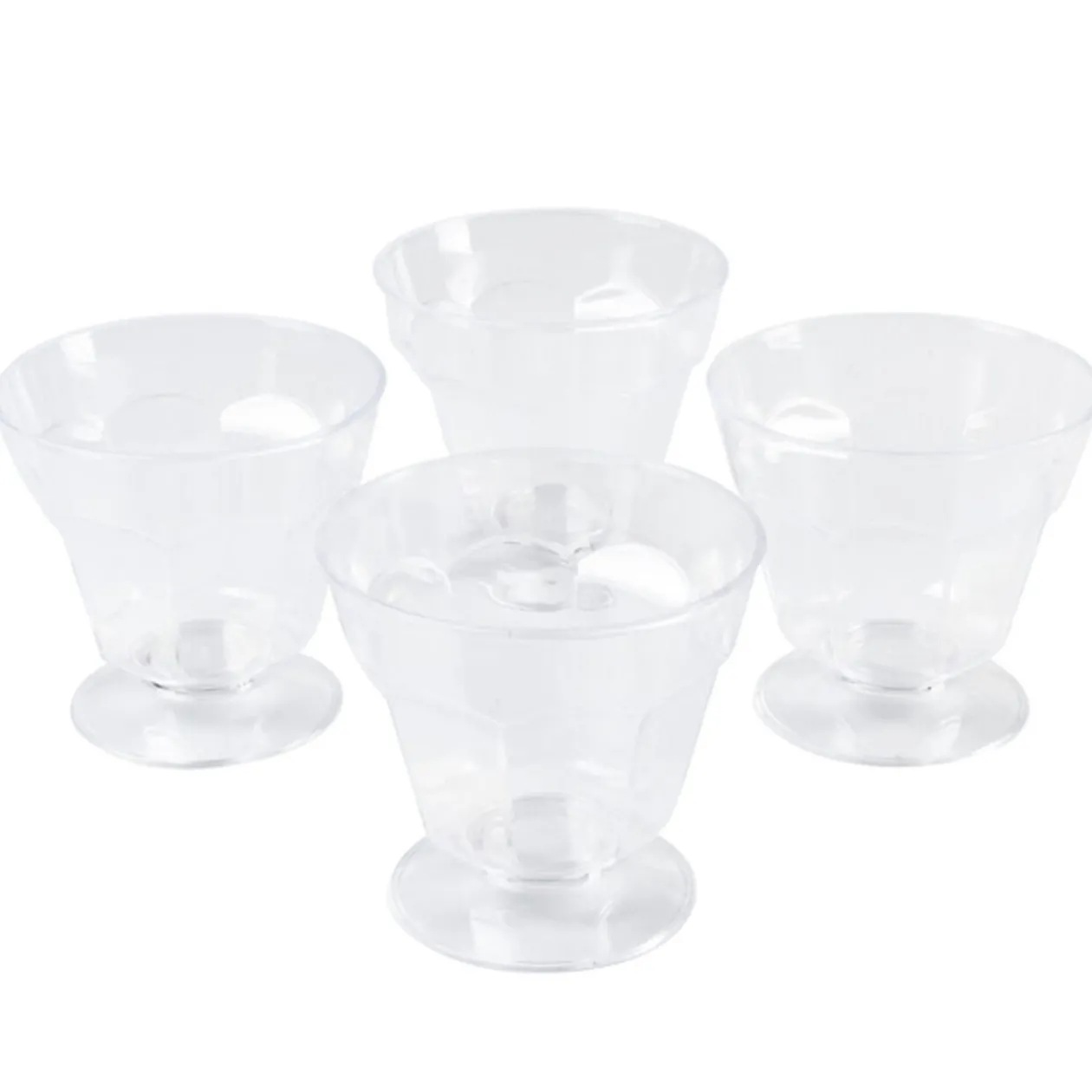 4 coupes à glace transparentes, dim. 10×10 cm, plastique.