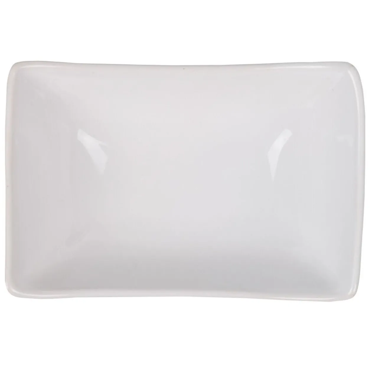 Coupelle blanche légèrement incurvée, dim. 12x8x3 cm, faïence.