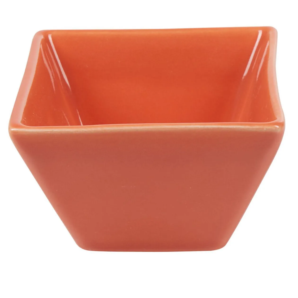 Coupelle carrée corail, dim. 10,5×10,5xh.6 cm, faïence.