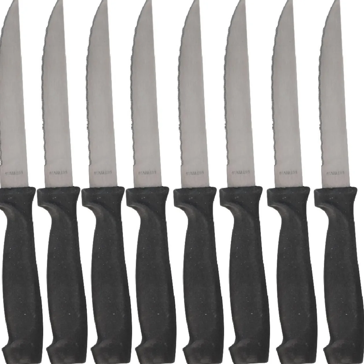 Lot de 10 couteaux avec lame en inox et manche en plastique noir.