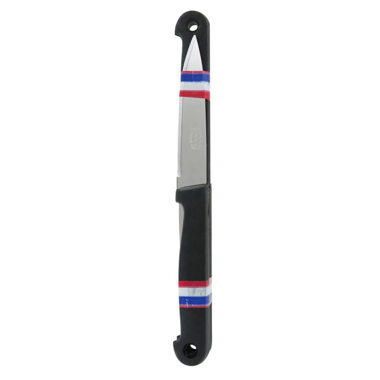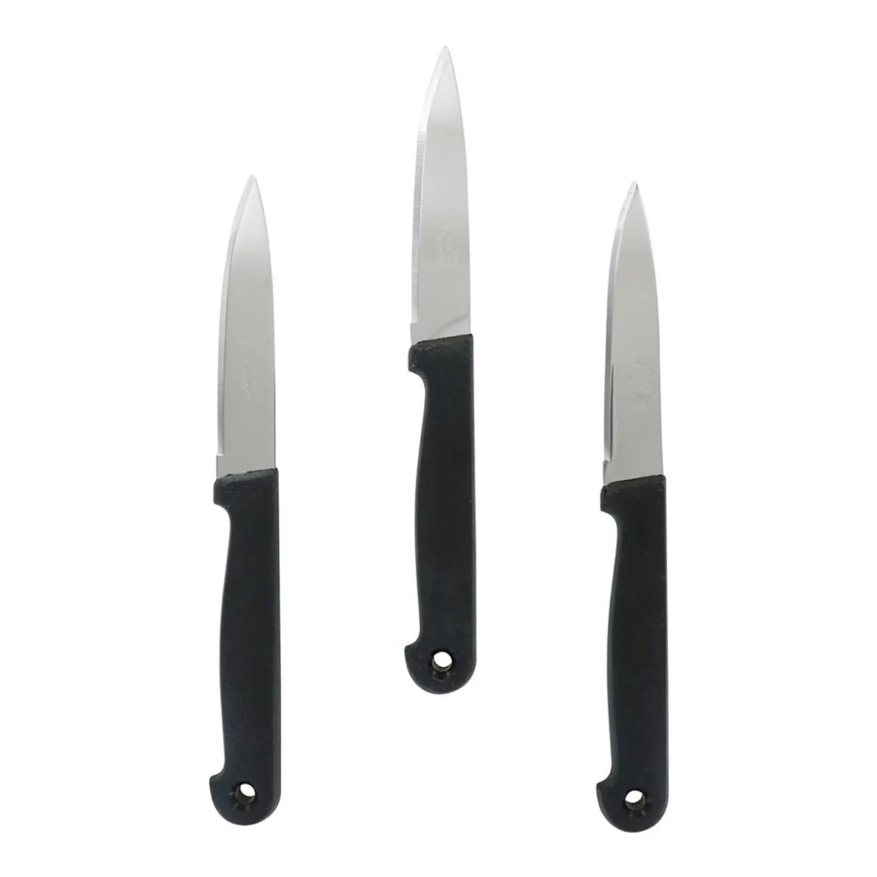 Lot de 3 couteaux à dents de 18.5 cm de longueur avec manche en plastique noir et lame en inox.