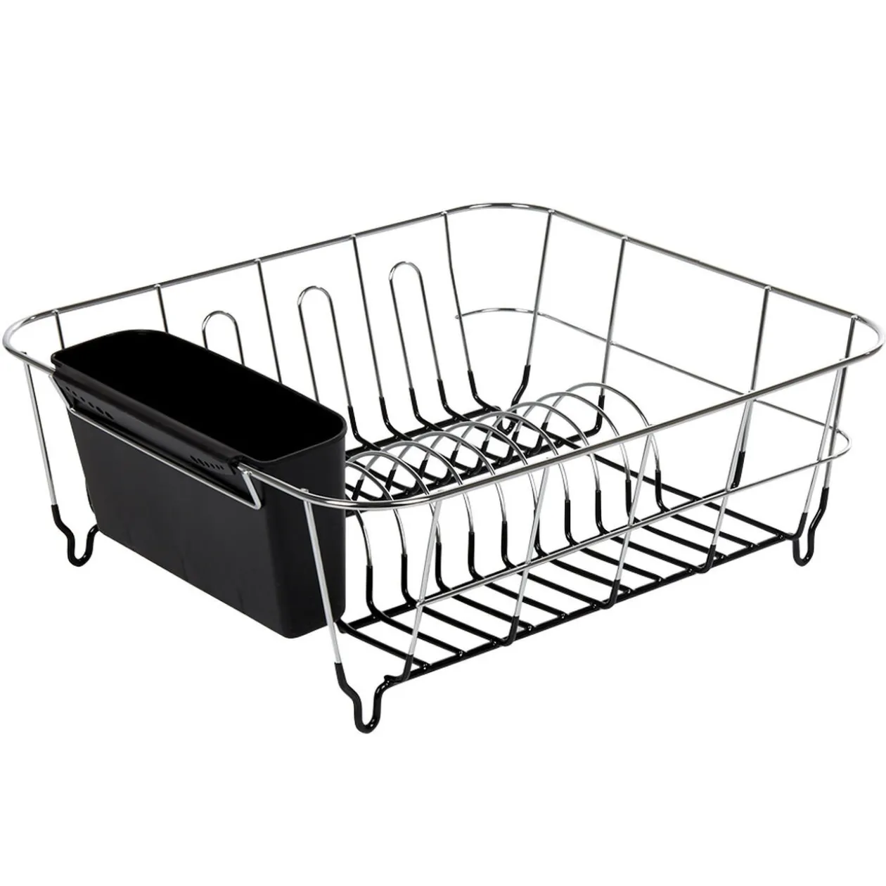 Votre vaisselle est terminée ? Prête à égoutter ? Cet égouttoir gris avec compartiment à couverts noir sera idéal !